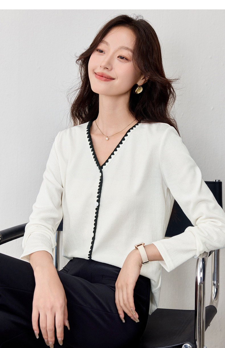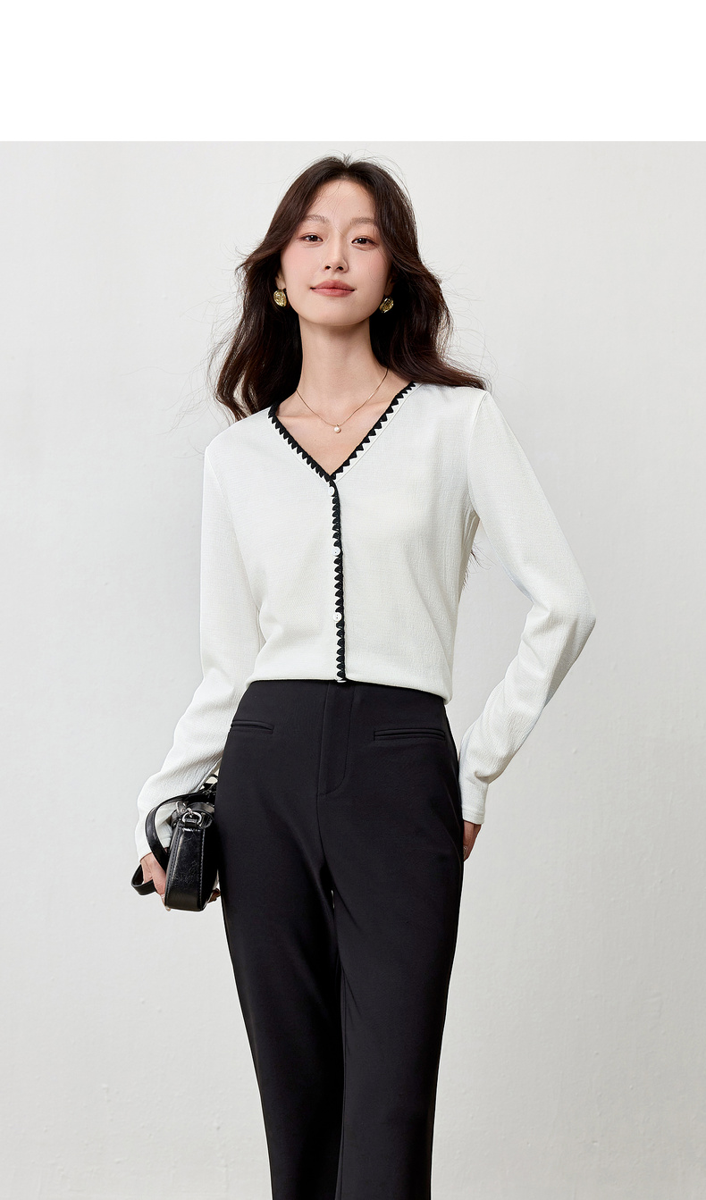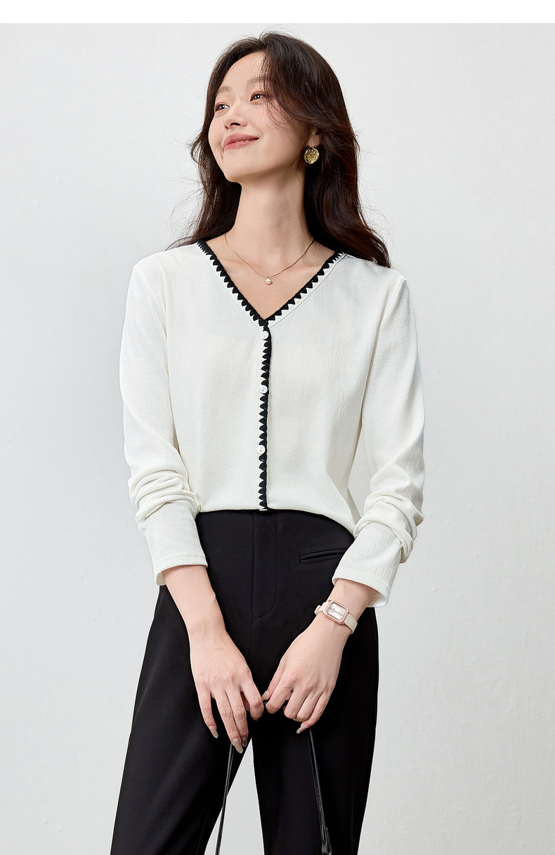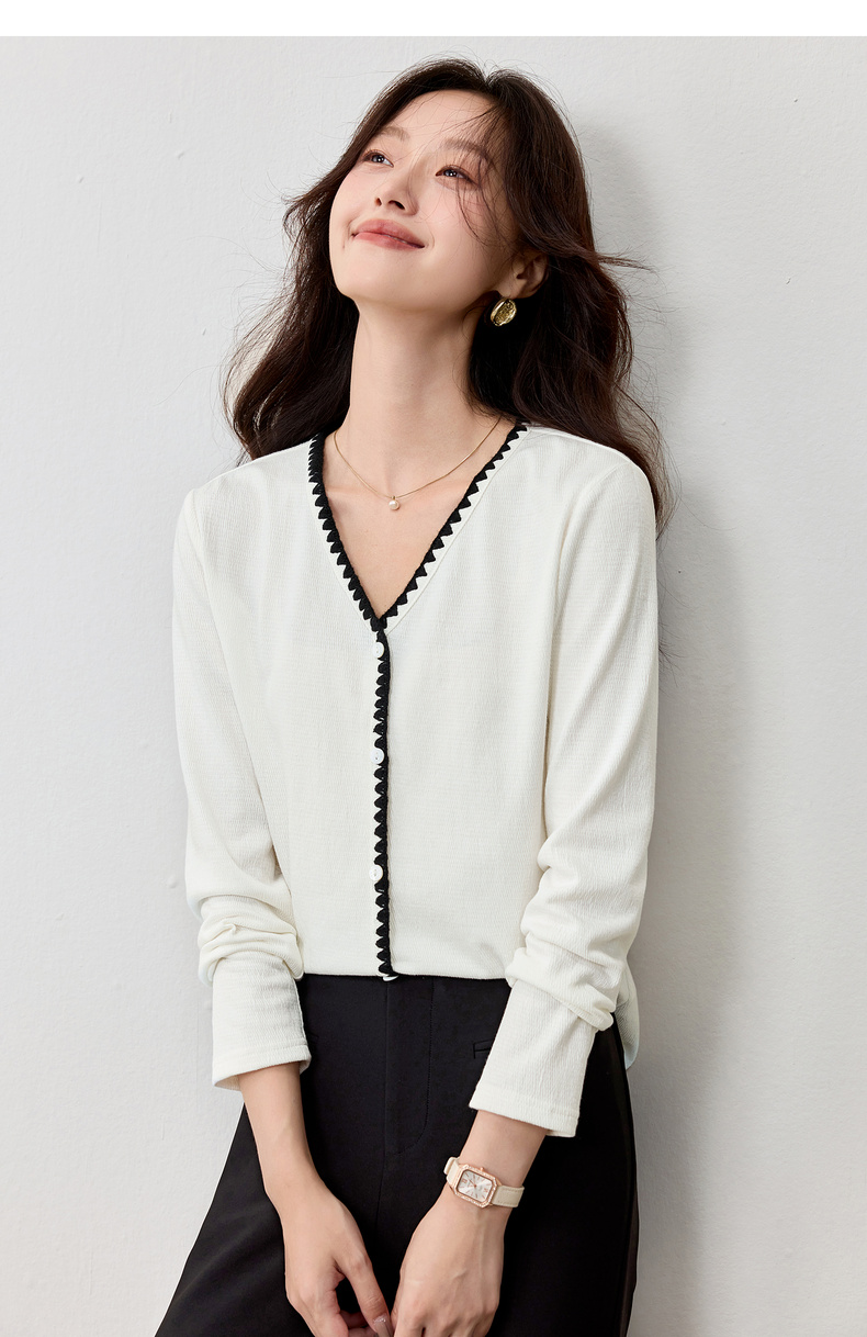 【内购】【撞色设计】撞色山峦贝壳扣假门襟柔软弹力水波纹肌理针织打底衫-153SF2955