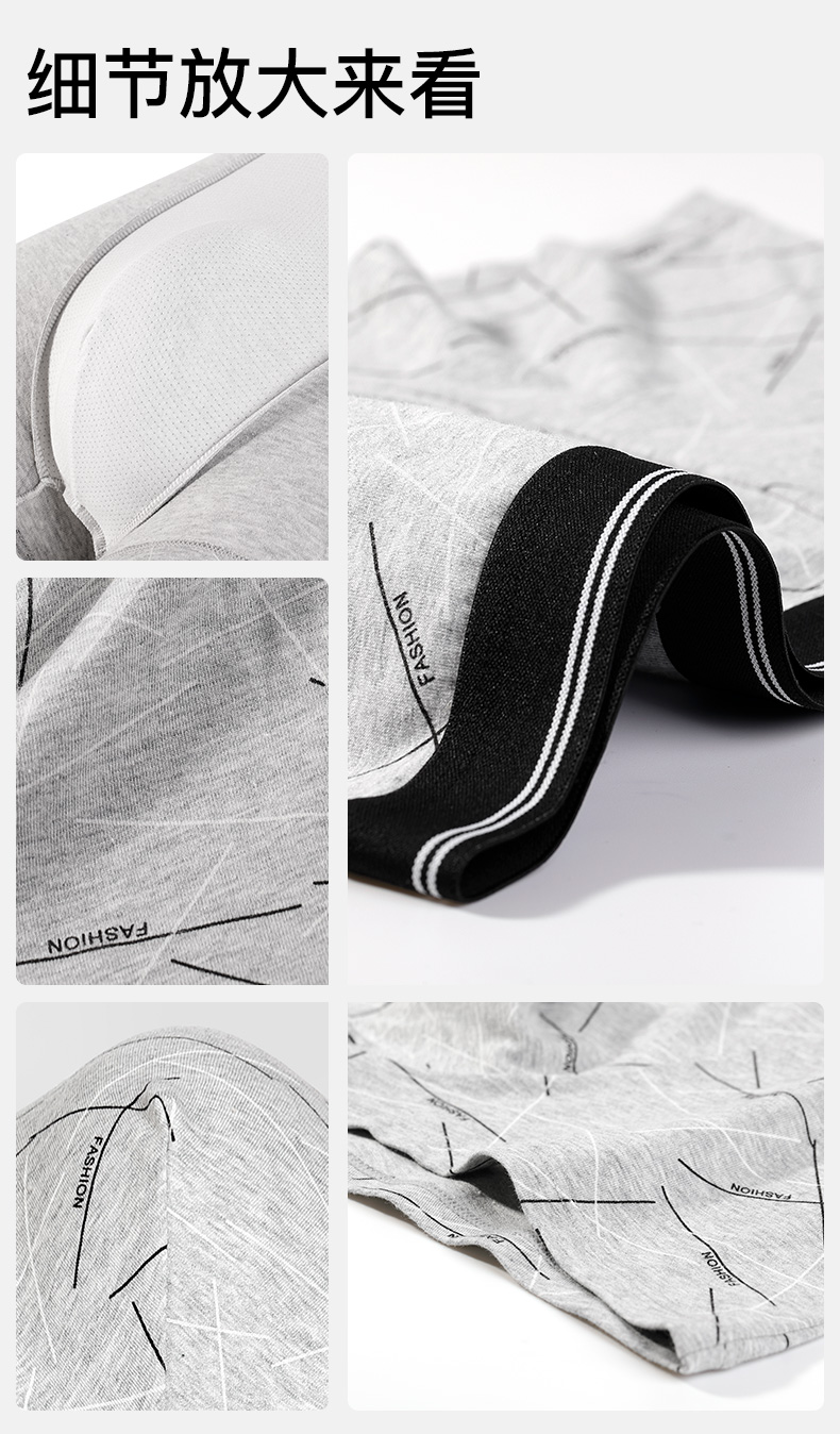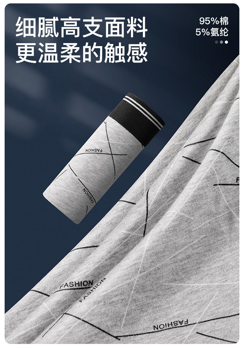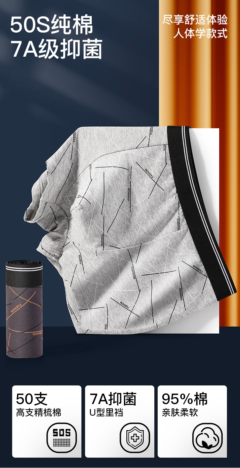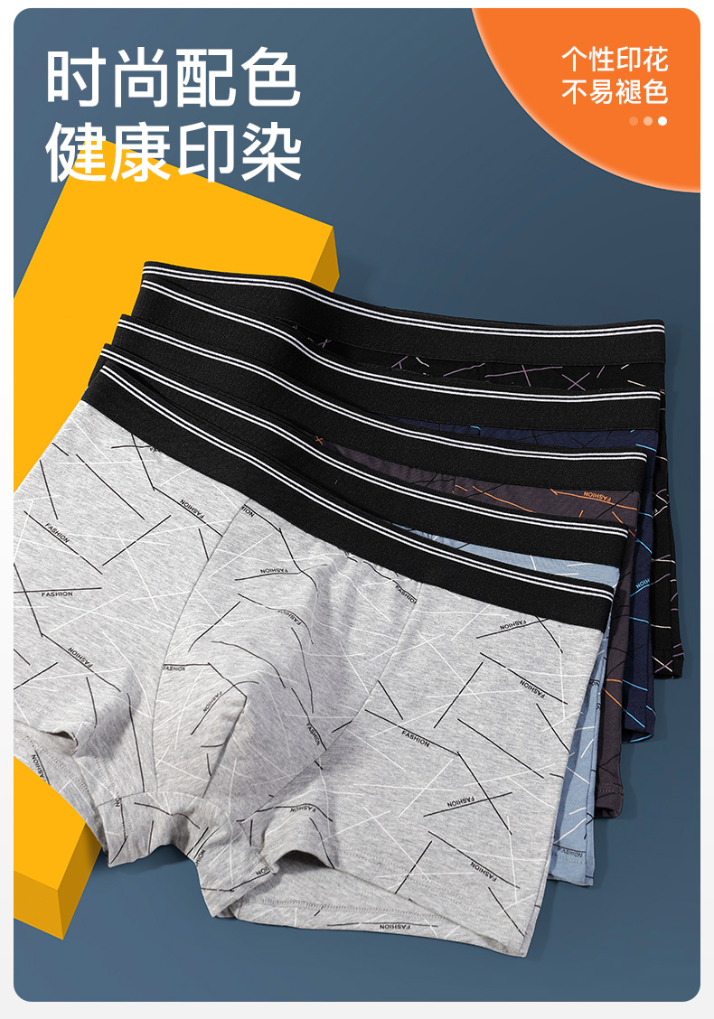 I‘d爱帝高支精梳棉男士内裤撞色明筋平角裤4条装