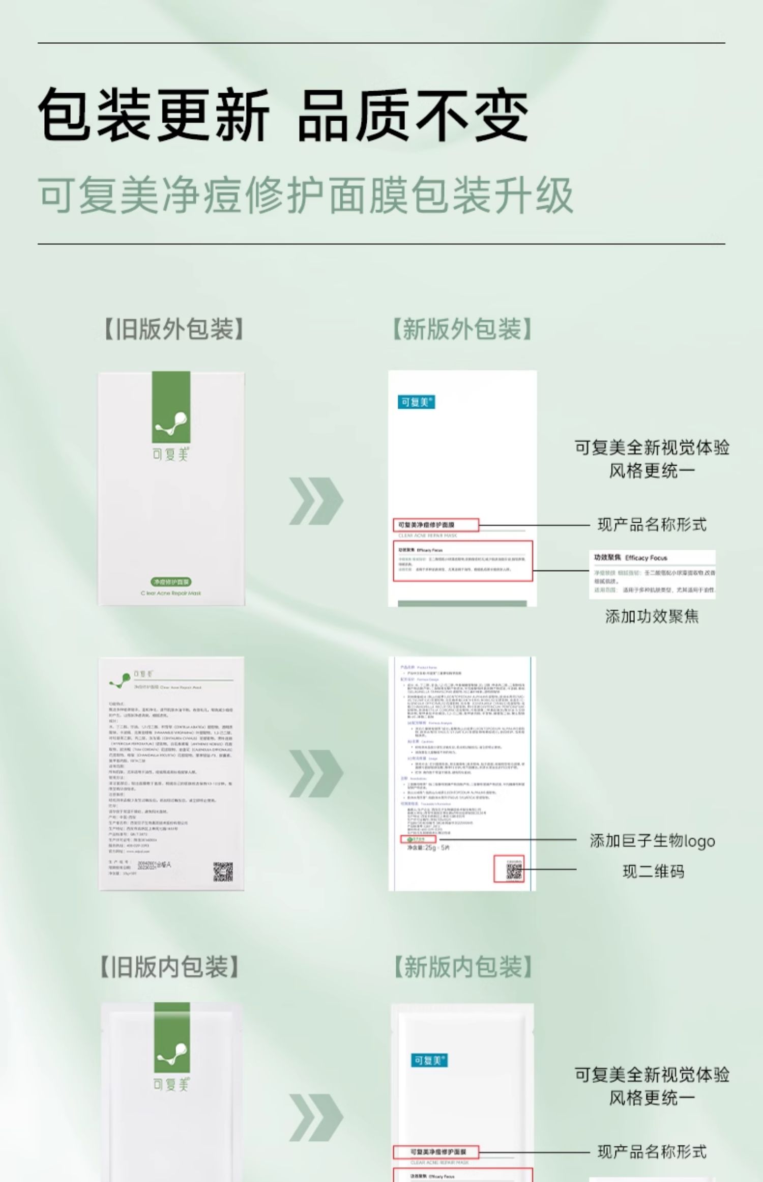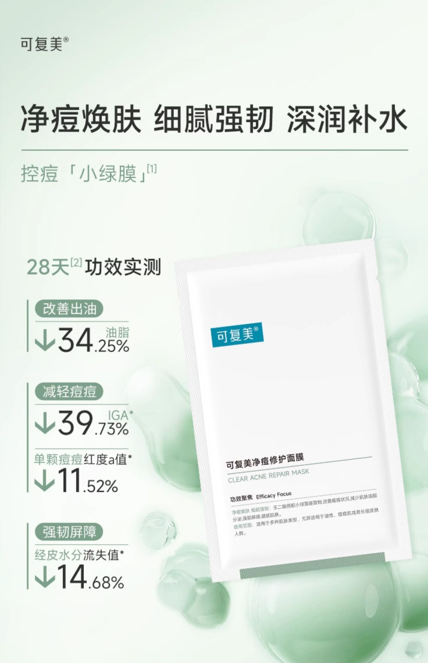 【打包链接】可复美净痘修护面膜淡化痘印痘坑痘疤粉刺闭口痘肌补水保湿控油(发新款)