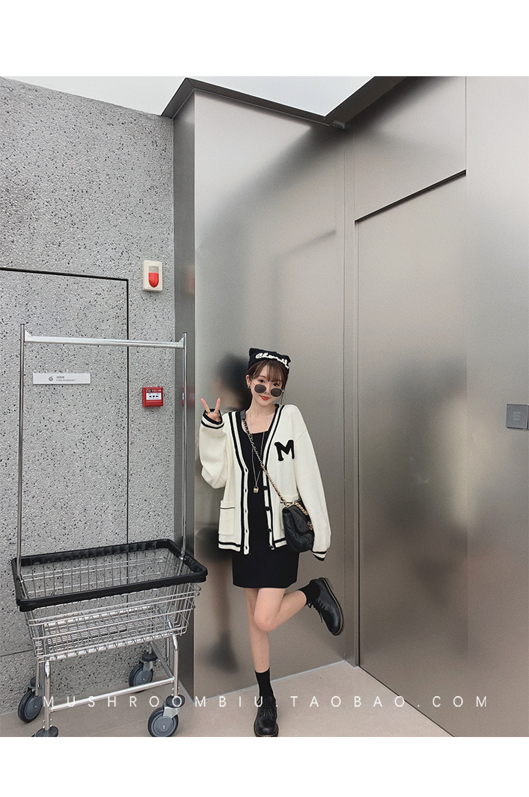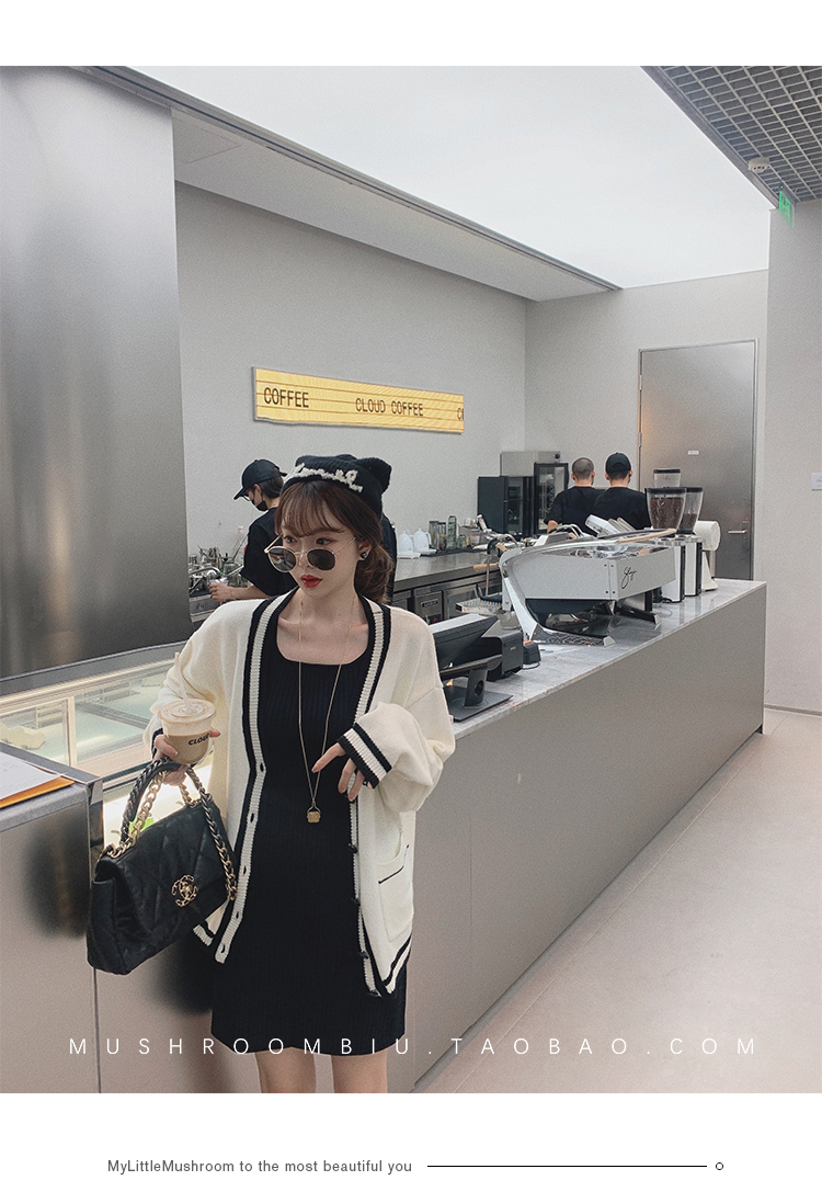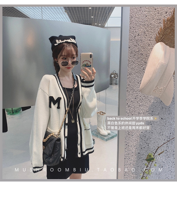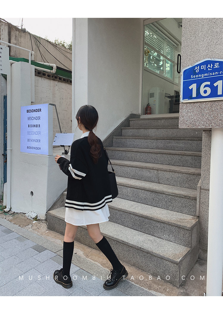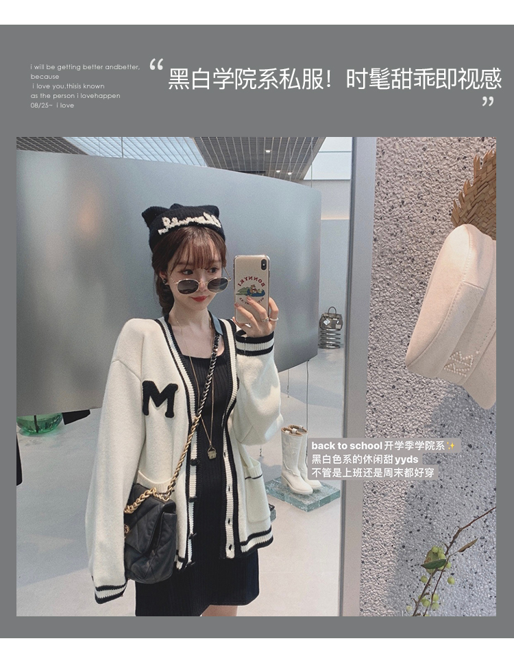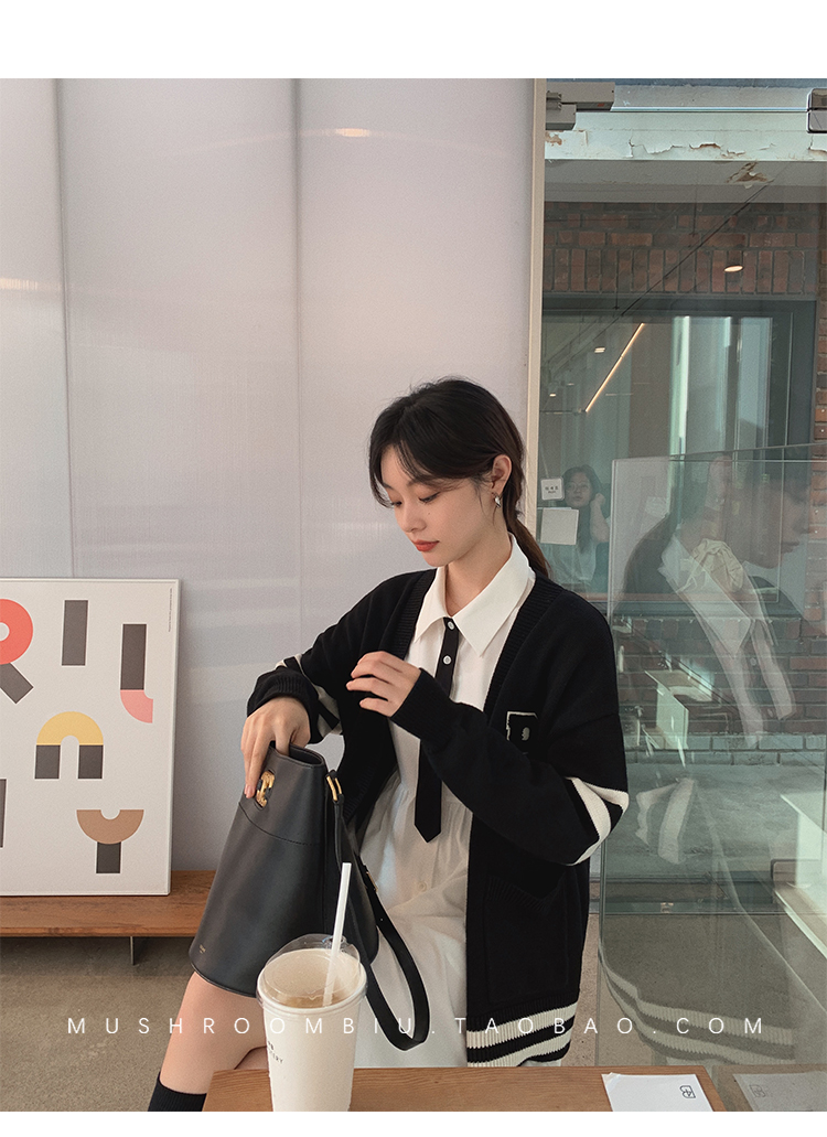 金蘑菇菇【back to school开学季】黑白学院系洋气针织开衫,小条纹款就是有2个洞不是破哦~