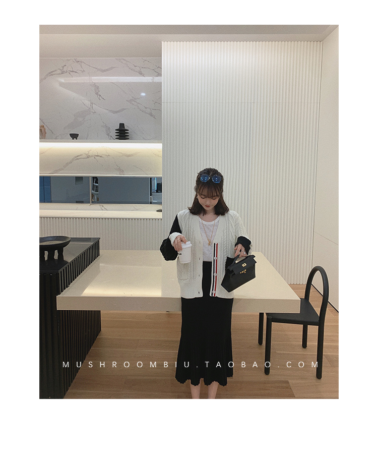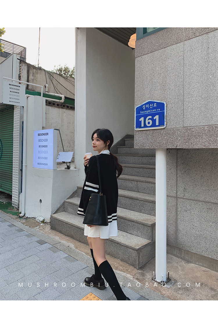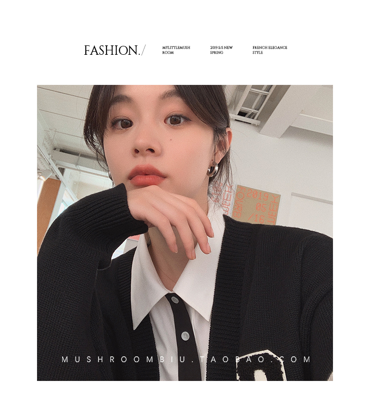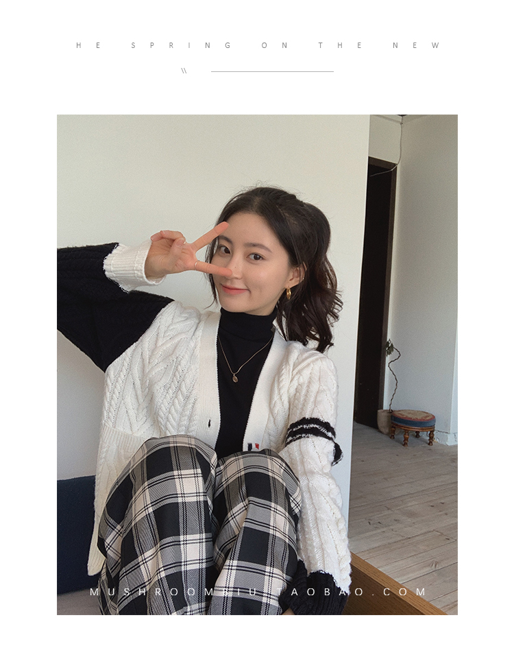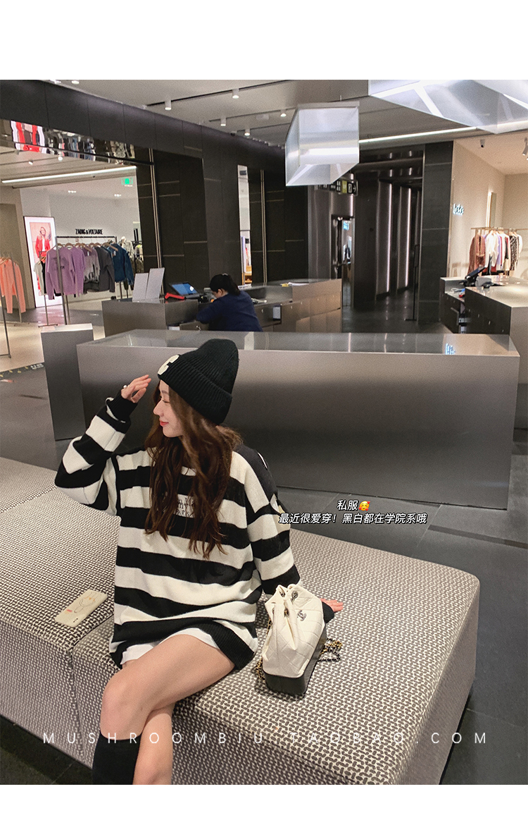 金蘑菇菇【back to school开学季】黑白学院系洋气针织开衫,小条纹款就是有2个洞不是破哦~