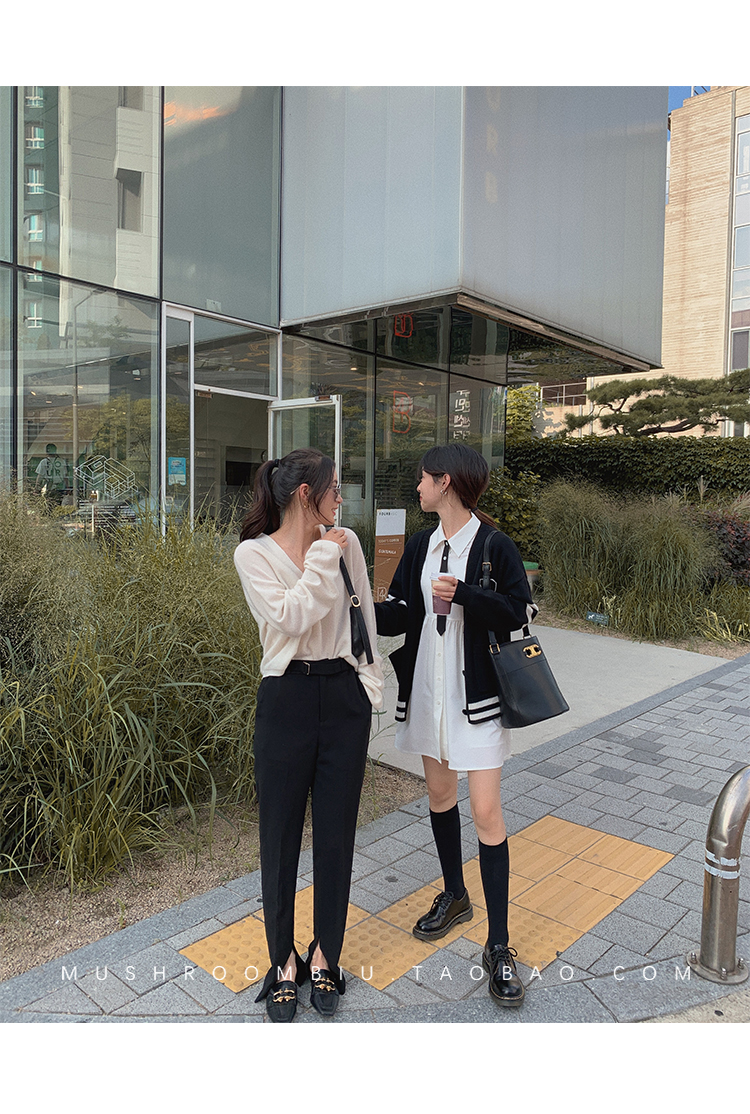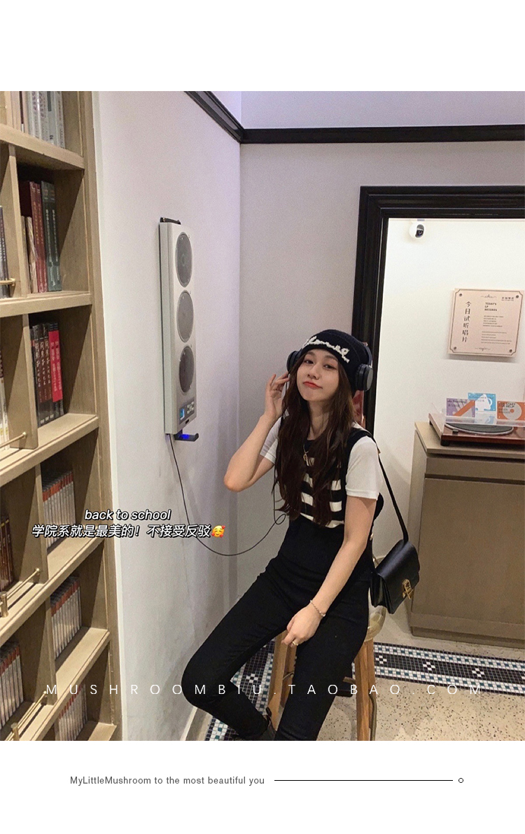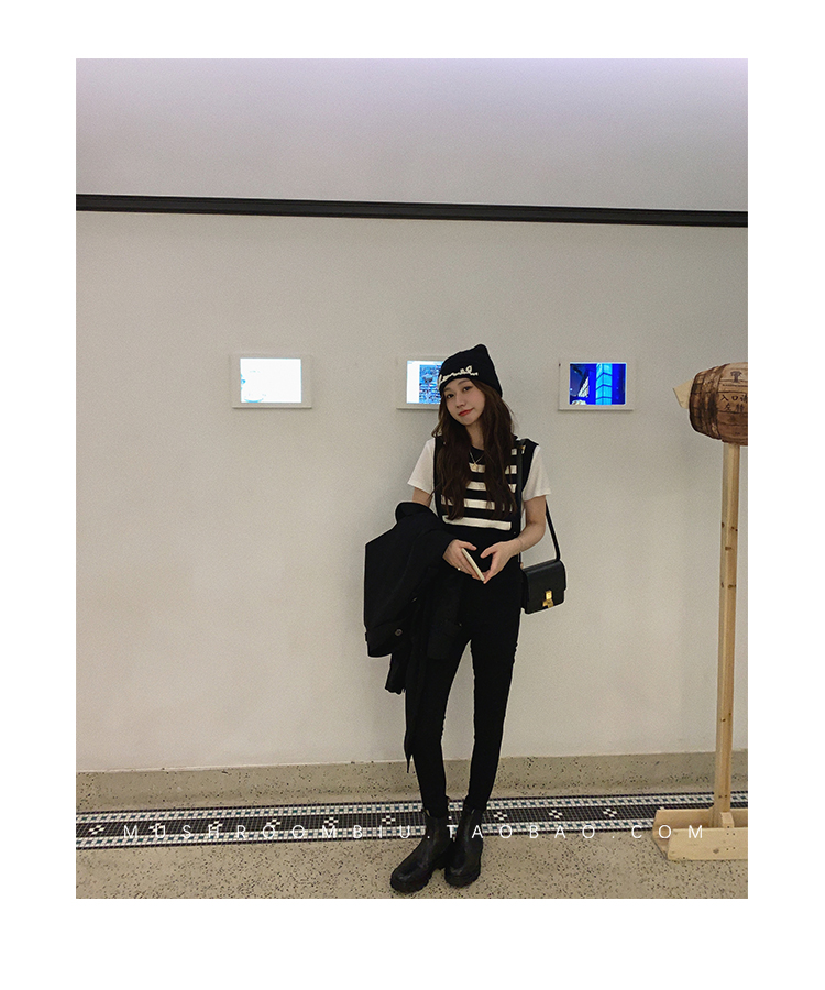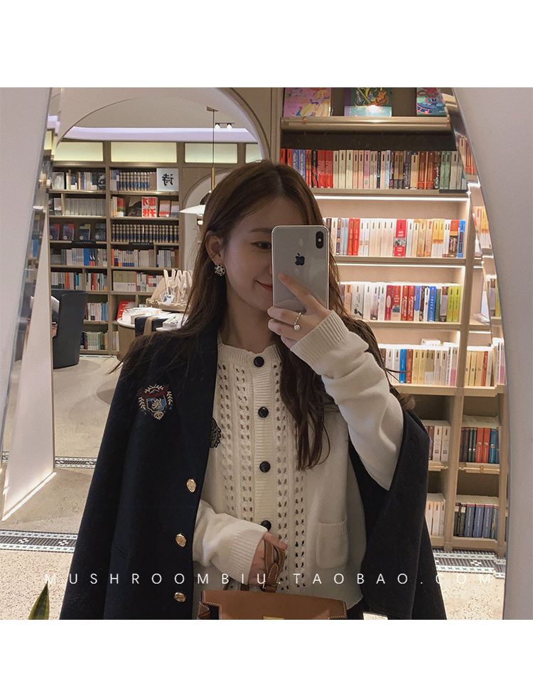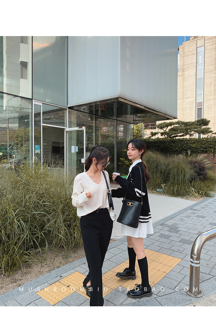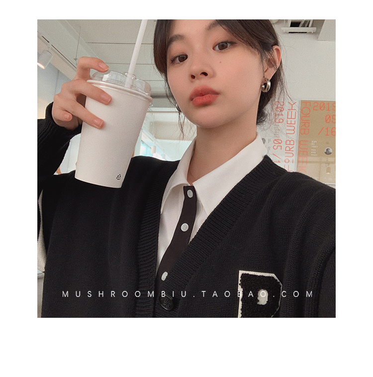 金蘑菇菇【back to school开学季】黑白学院系洋气针织开衫,小条纹款就是有2个洞不是破哦~