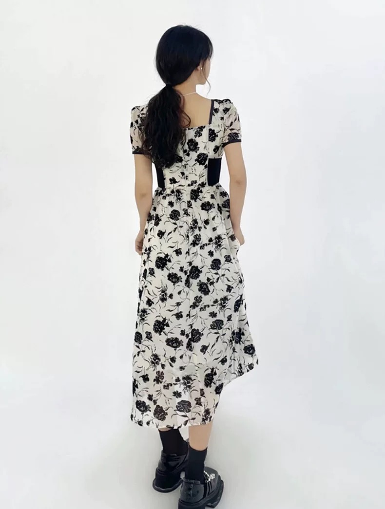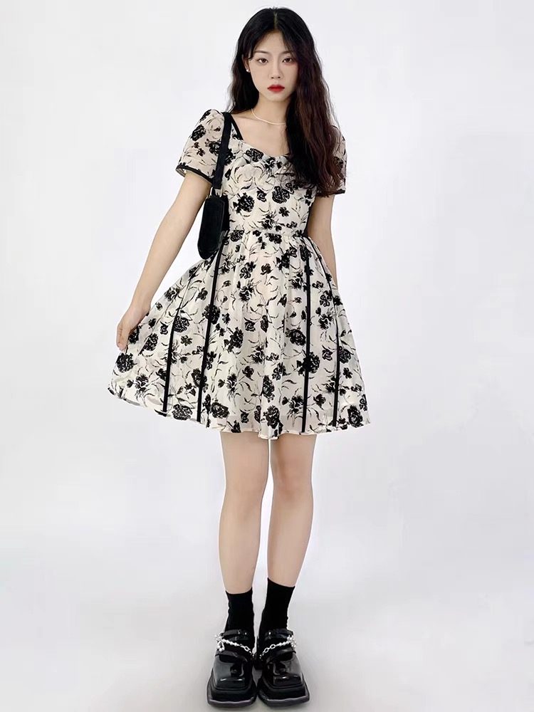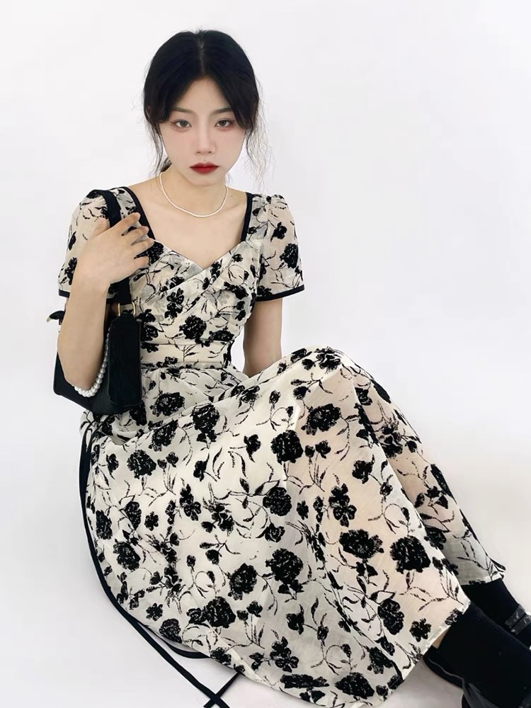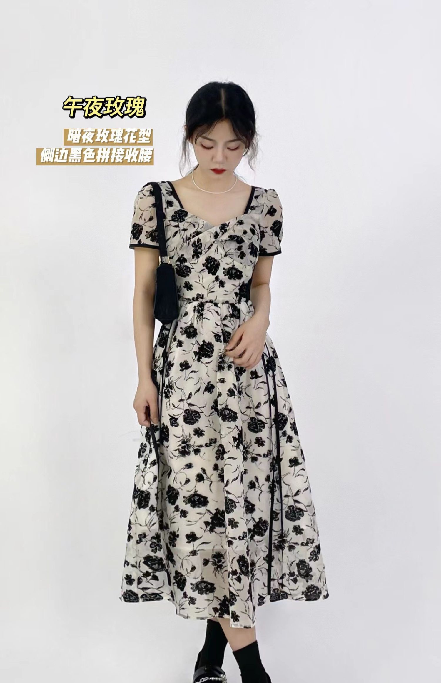 (清仓现货)【社群供K】法式复古短袖气质收腰连衣裙