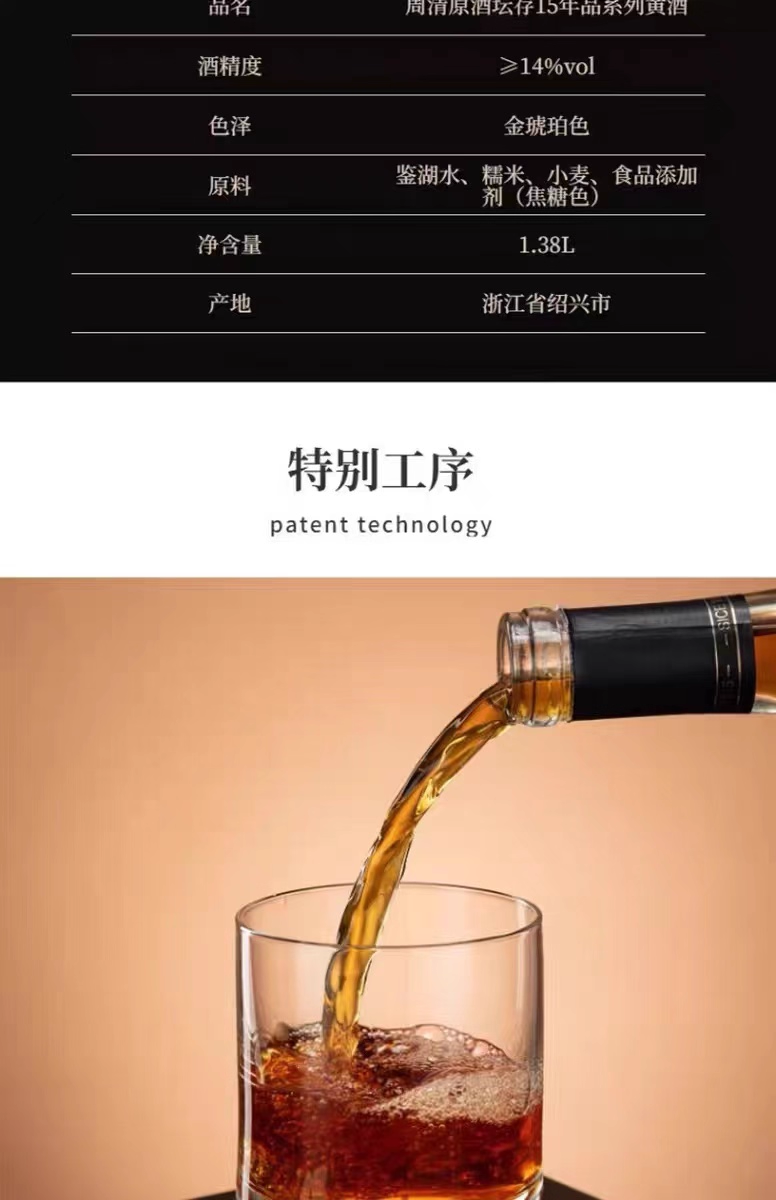 周清黄酒 经典黄酒 传统工艺酿造 1.38L礼盒装 绍兴特产黄酒