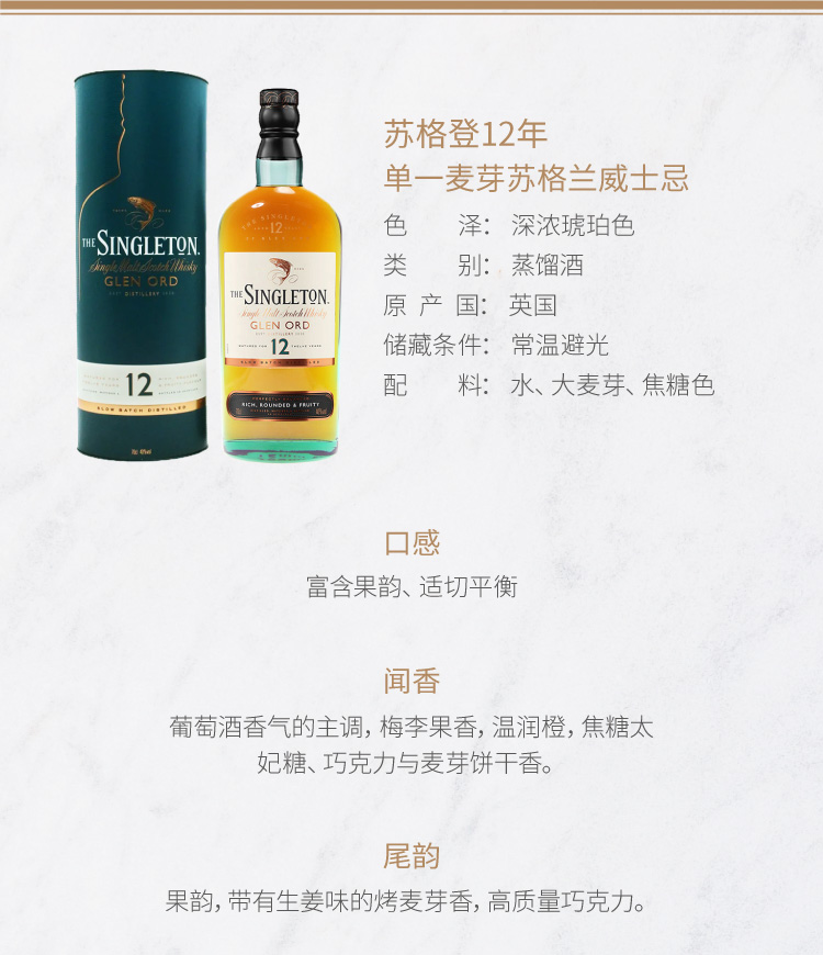 苏格登单一麦芽苏格兰威士忌12年 700ml 英国 成熟果香 果香丰富 口感饱满 012614