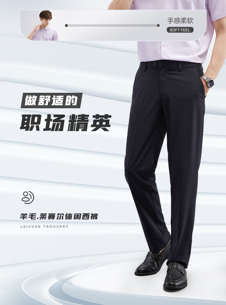 【含羊毛/含莱赛尔】柒牌男士西裤春夏新款商务正装直筒长裤 124H71230