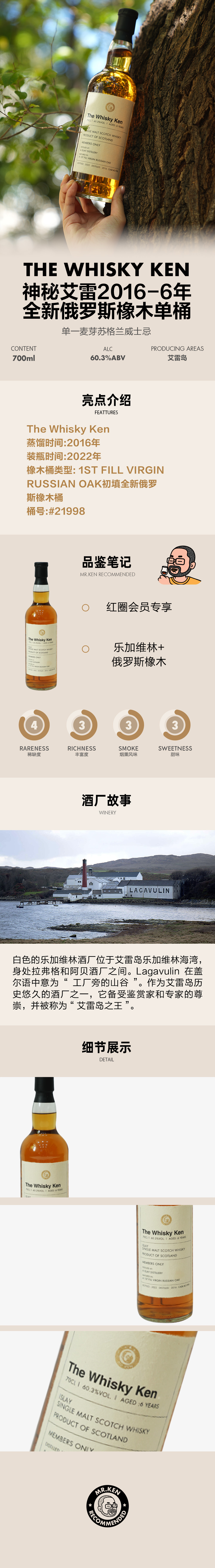【会员专享】神秘艾雷2016-6年全新俄罗斯橡木单桶单一麦芽苏格兰威士忌(封口微瑕,不漏酒,介意勿拍)