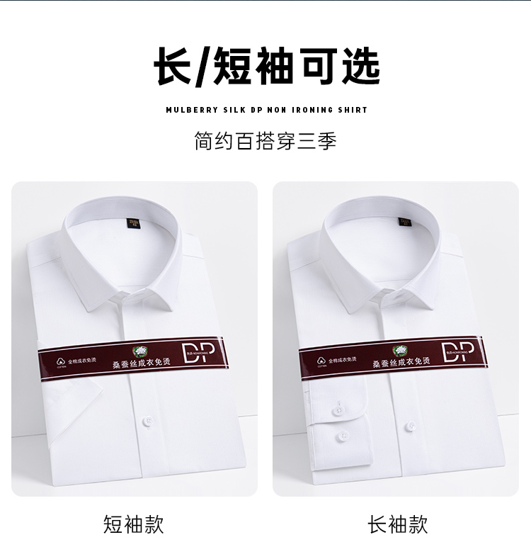 【实付满399送保温杯】【桑蚕丝100支双股成衣免烫衬衫】商务正装长袖短衬休闲通勤短袖衬衣