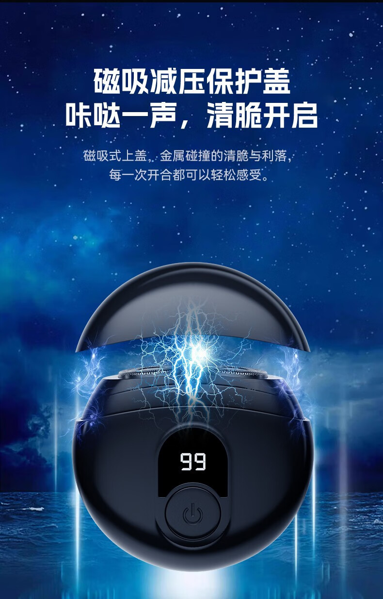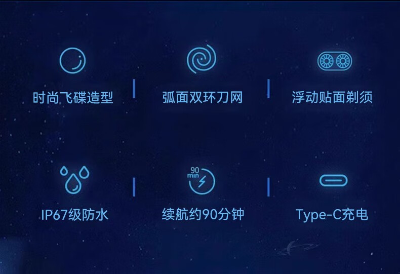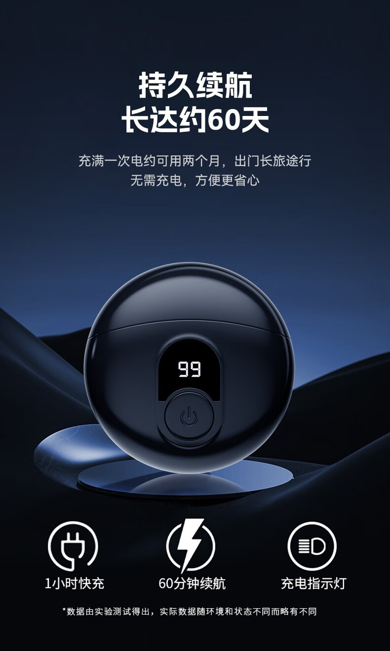 七夕情人节好礼【轻巧机身!一手掌握】超薄双环刀片,男士迷你小飞碟剃须刀电动刮胡刀便携款式剃胡须刀礼。ra