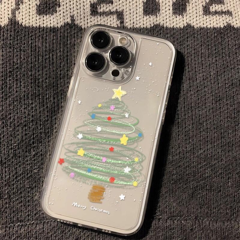 【简约精致时尚❗️节日仪式感】趣味圣诞树适用苹果16PROMAX手机壳iPhone15透明14防摔13软壳12潮。jb