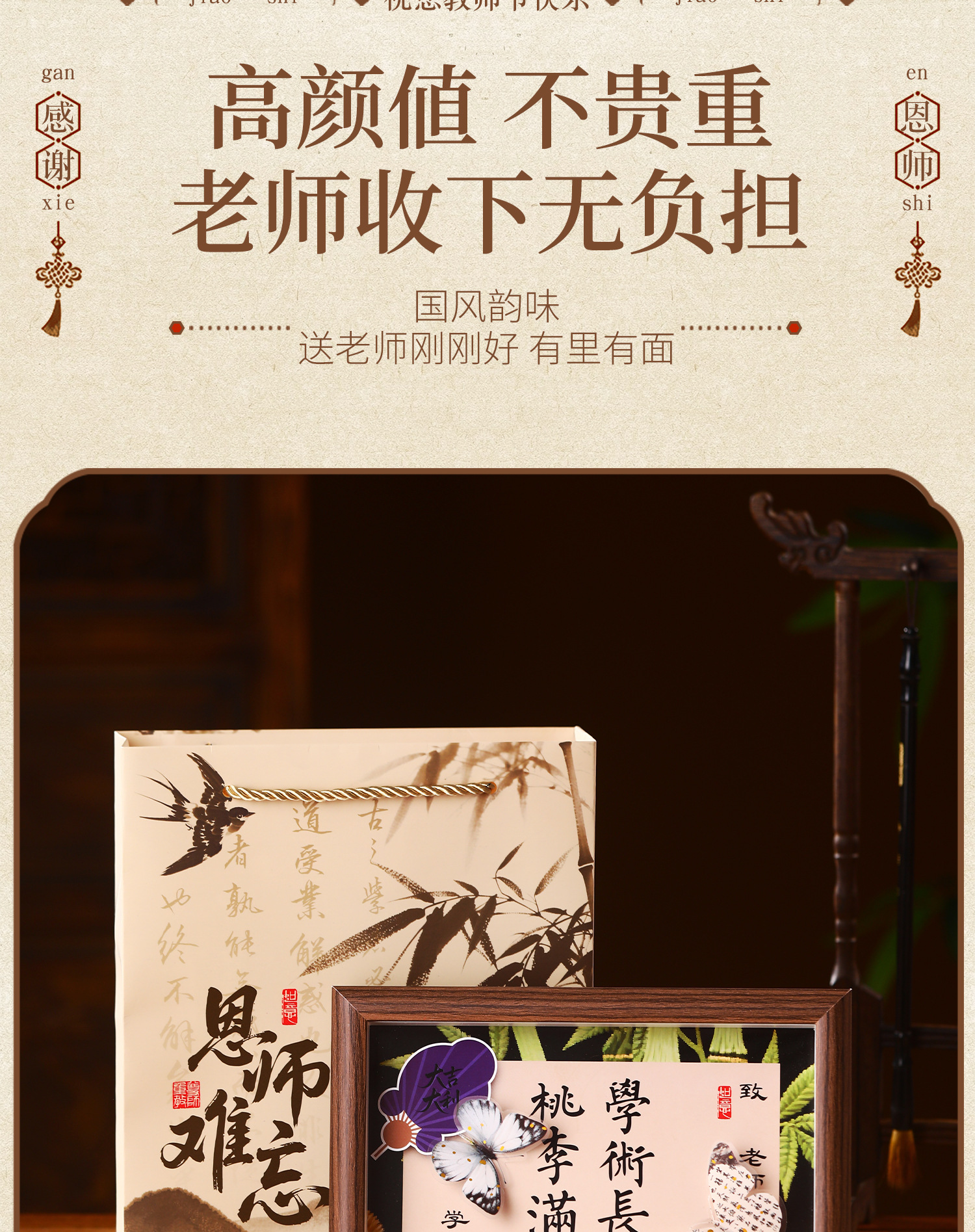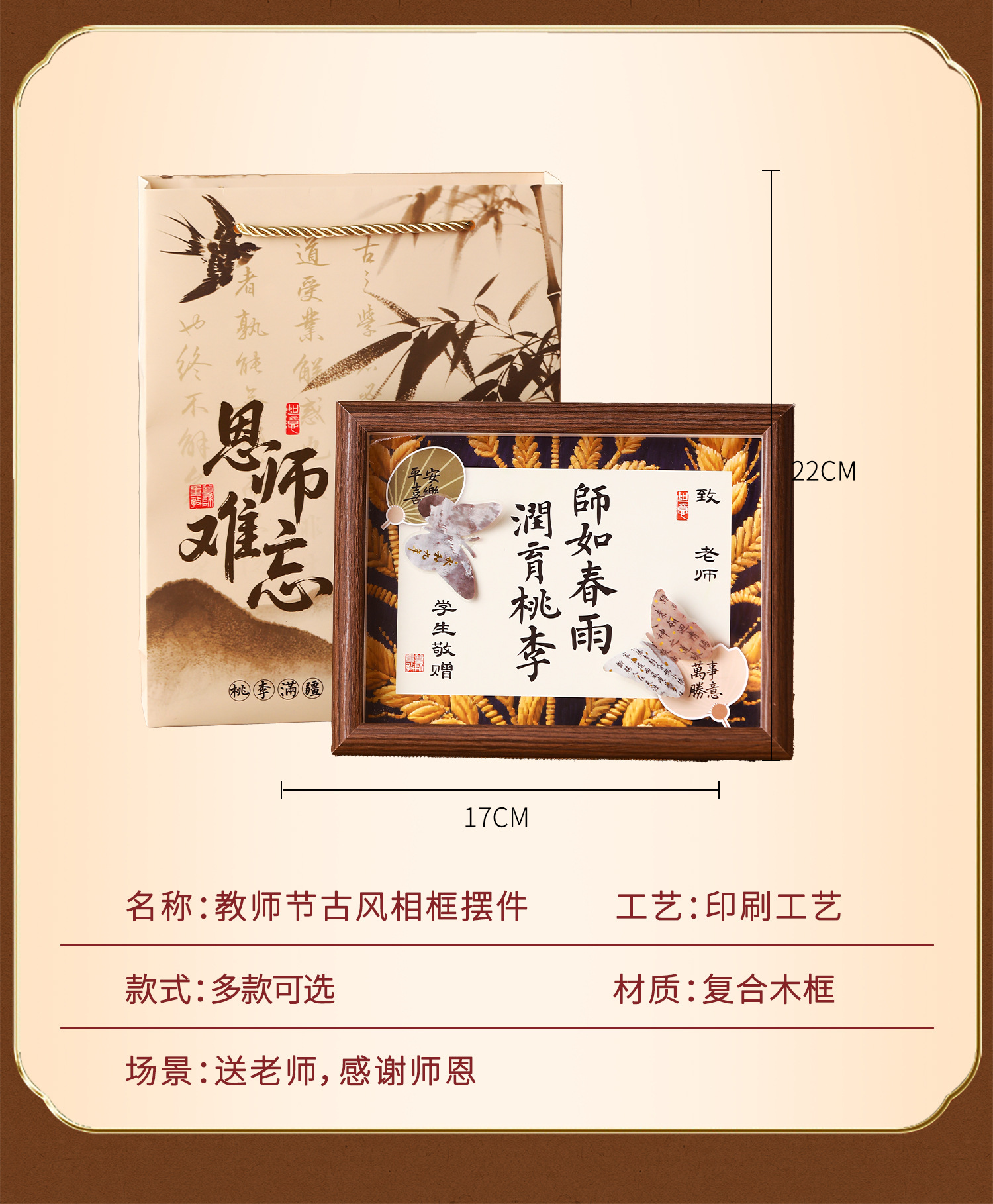 买就送礼袋【可挂可摆古风相框!给老师满满仪式感】创意书法摆台,教师节礼物幼儿园送老女师高端实用感恩国风相框摆台礼品。ra