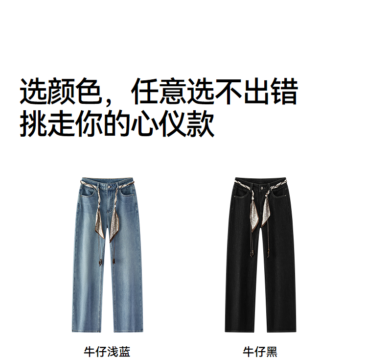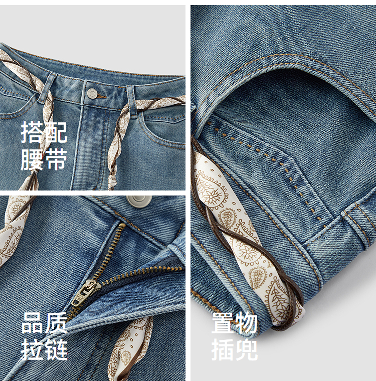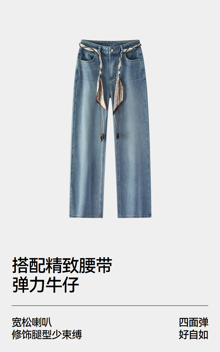 商场同款|森马牛仔裤女春季腰带宽松弹力2026新款复古港风喇叭裤
