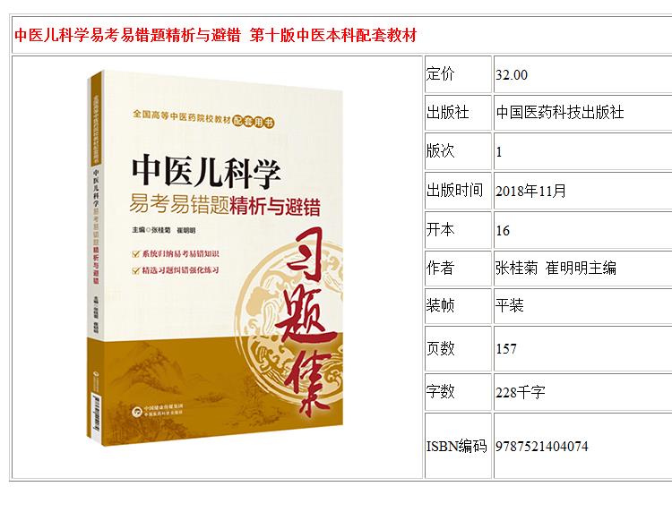中医儿科学易考易错题精析与避错 第十版中医本科配套教材 张桂菊 崔明明主编 中国医药科技出版社 中医教辅 儿科学 本科学生阅读