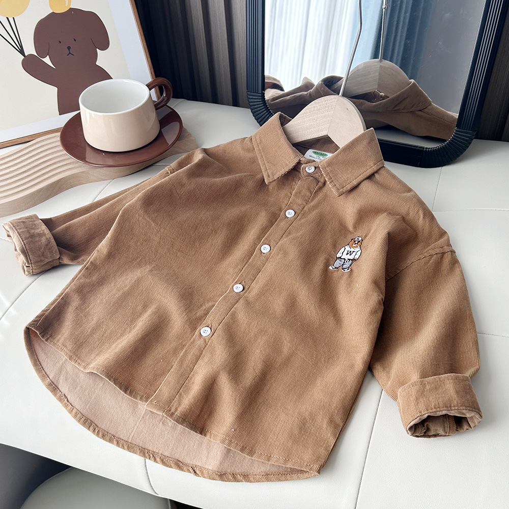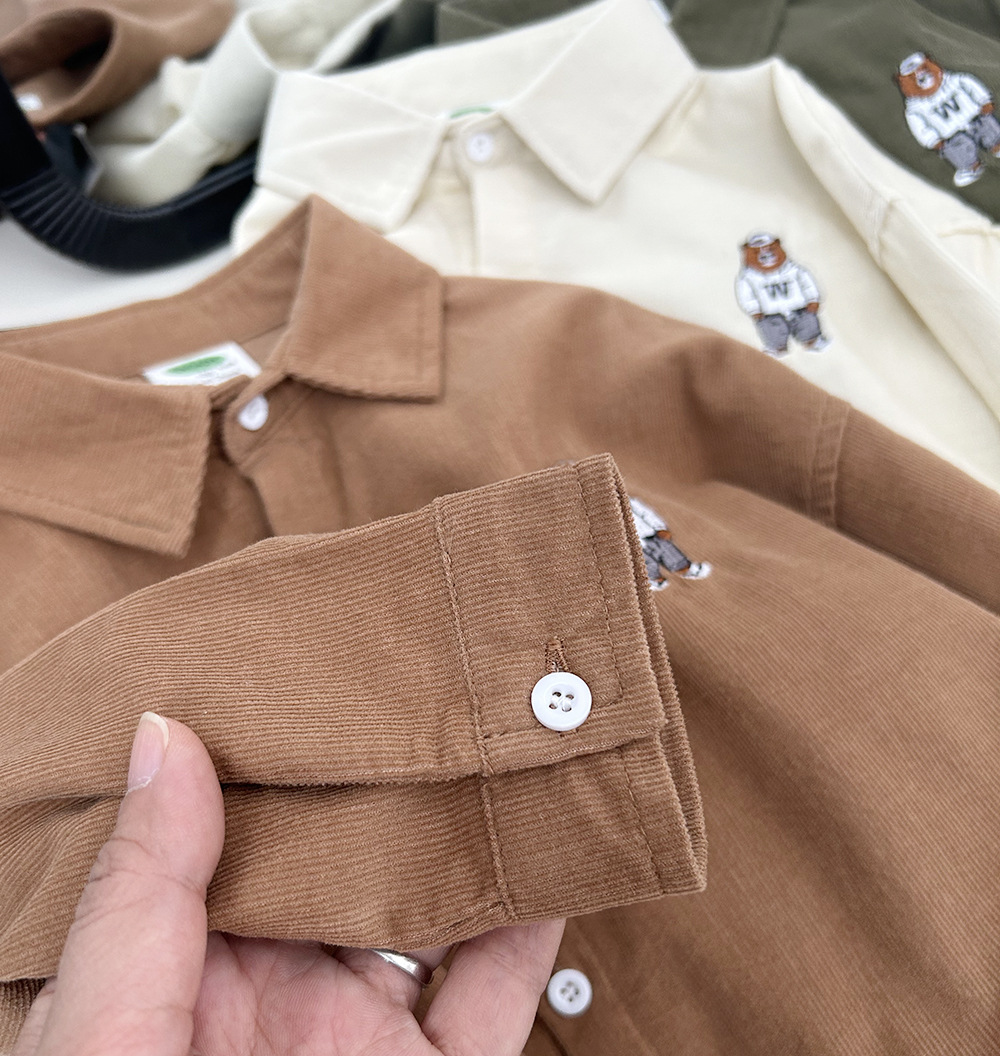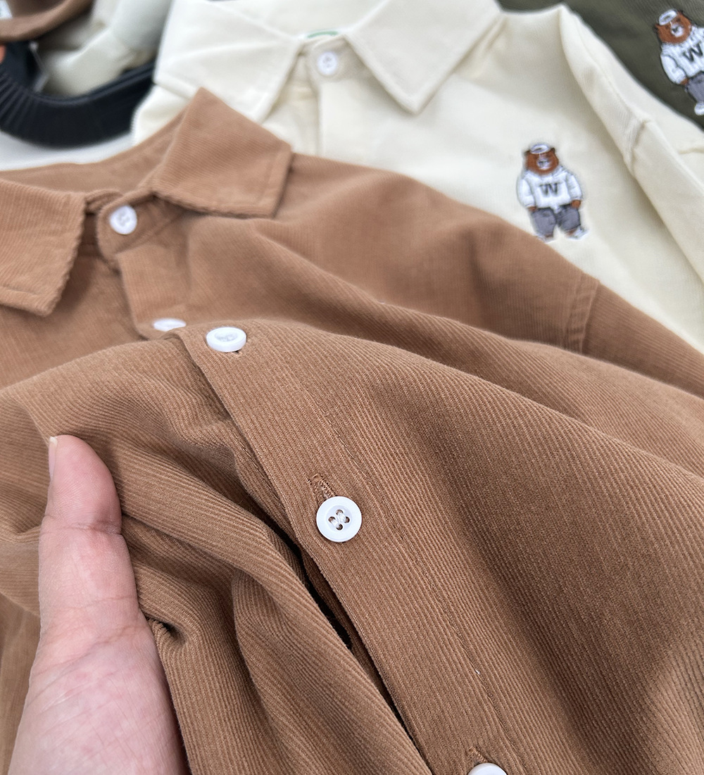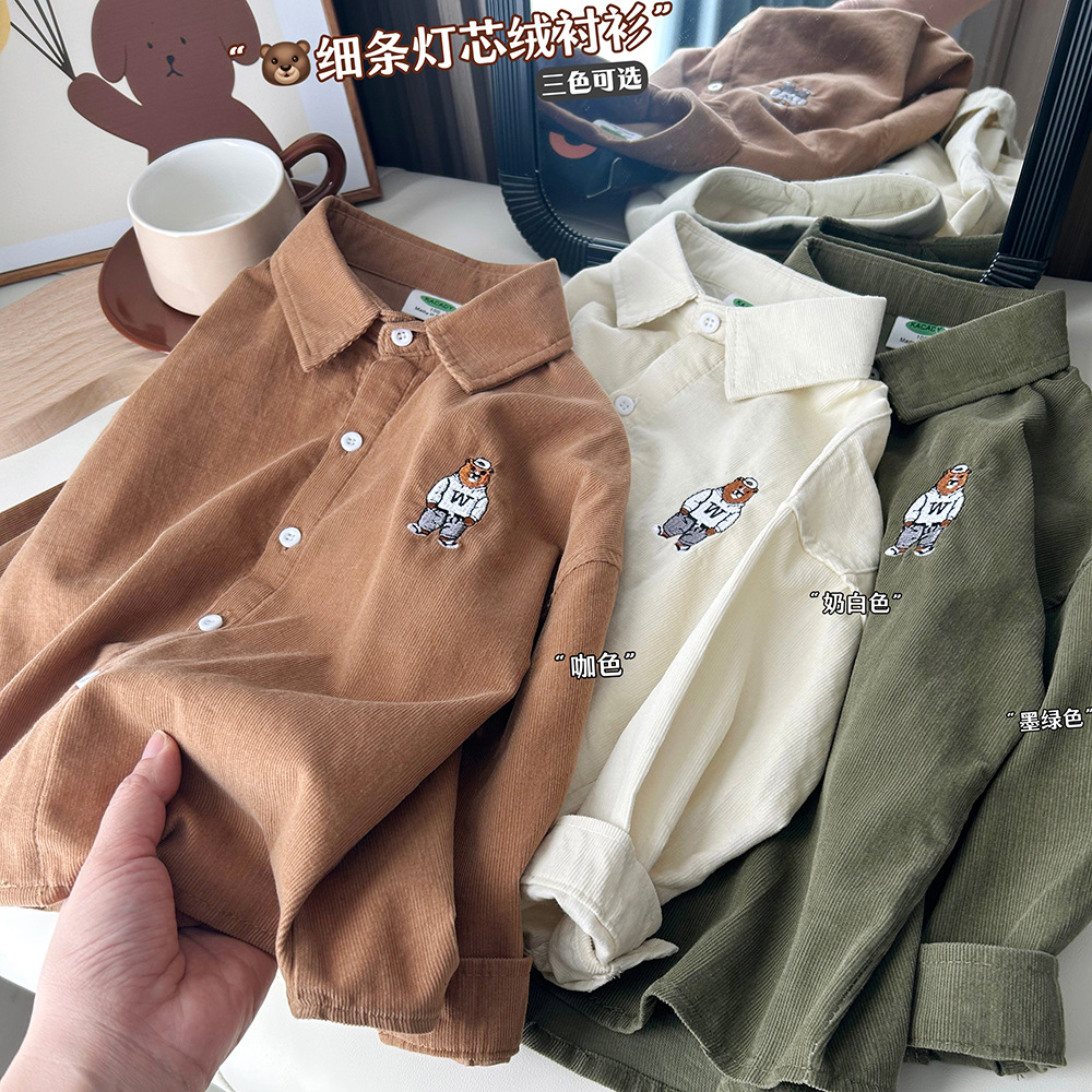 【89元2件】春秋冬童装男童儿童细条棉质/灯芯绒卡通长袖衬衫衬衣