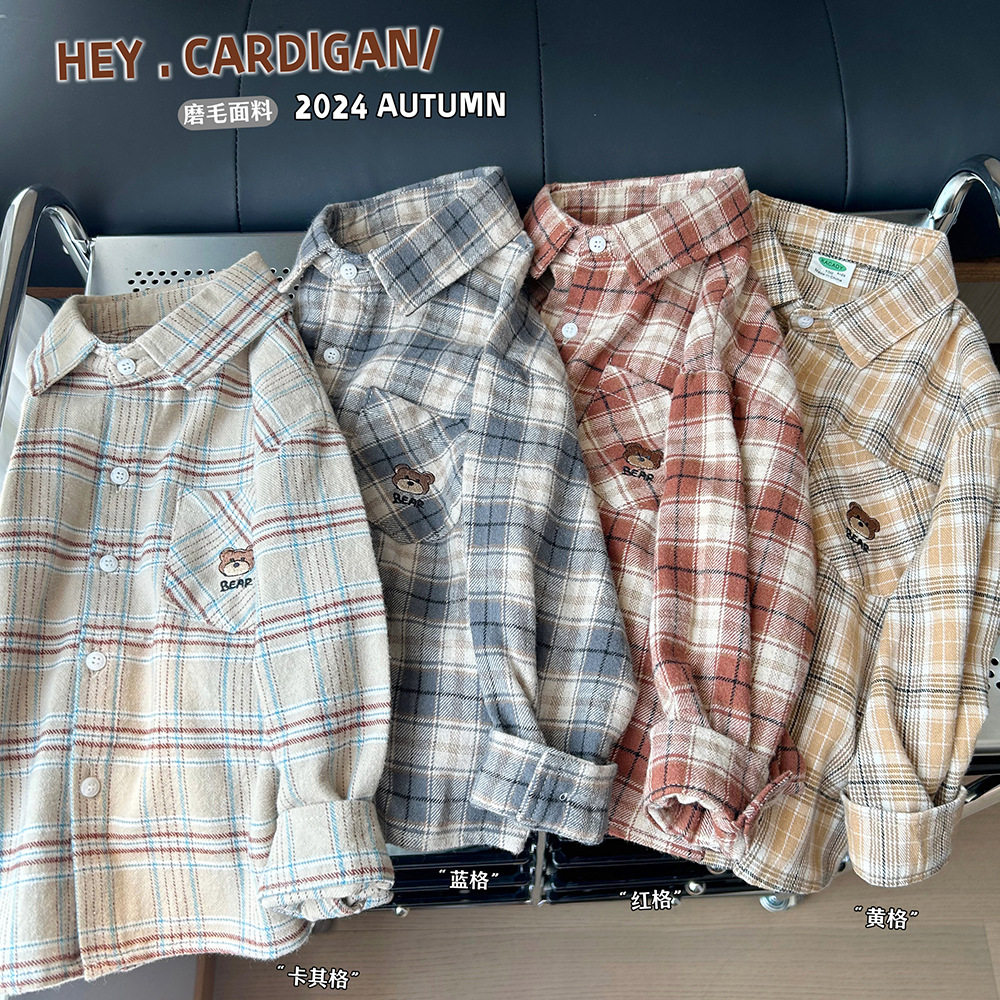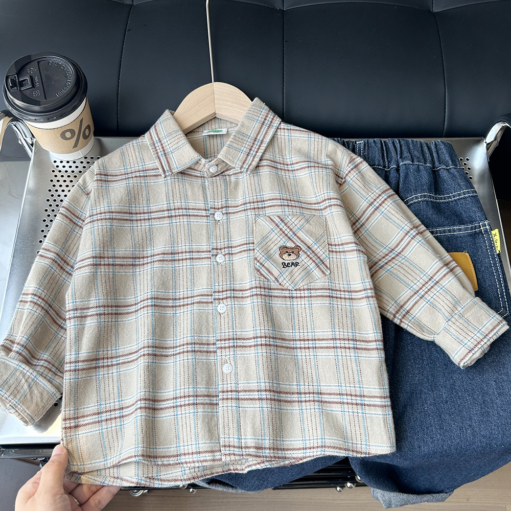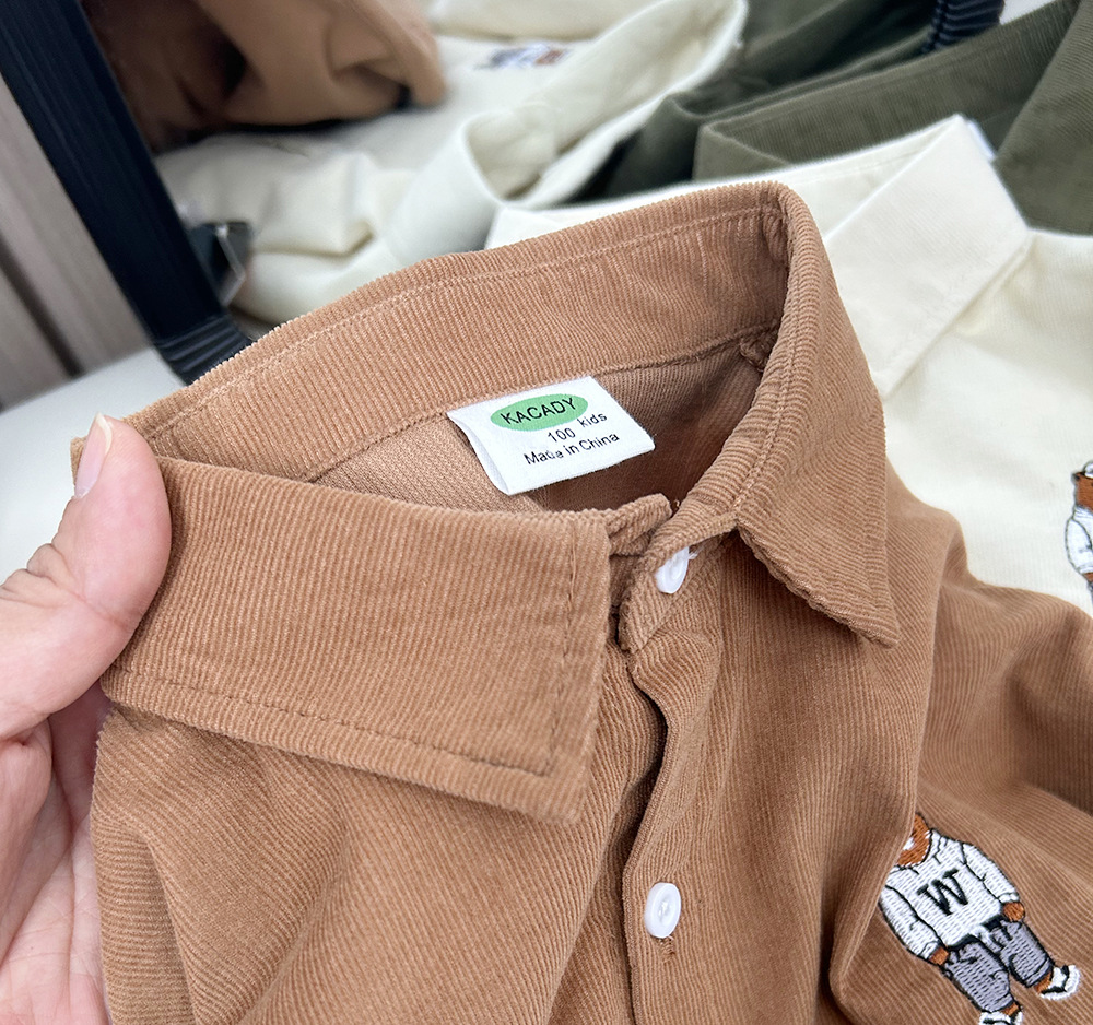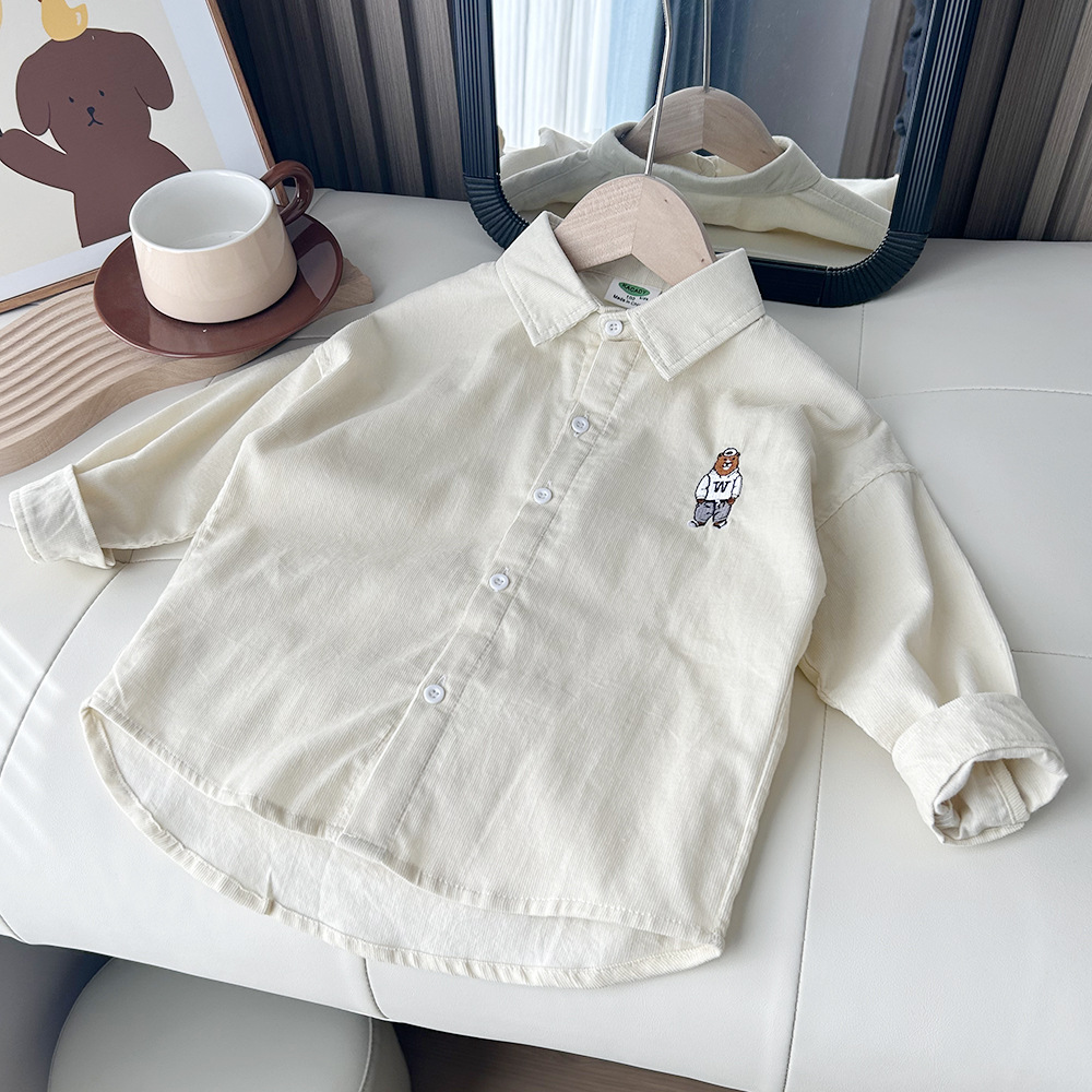 【89元2件】春秋冬童装男童儿童细条棉质/灯芯绒卡通长袖衬衫衬衣