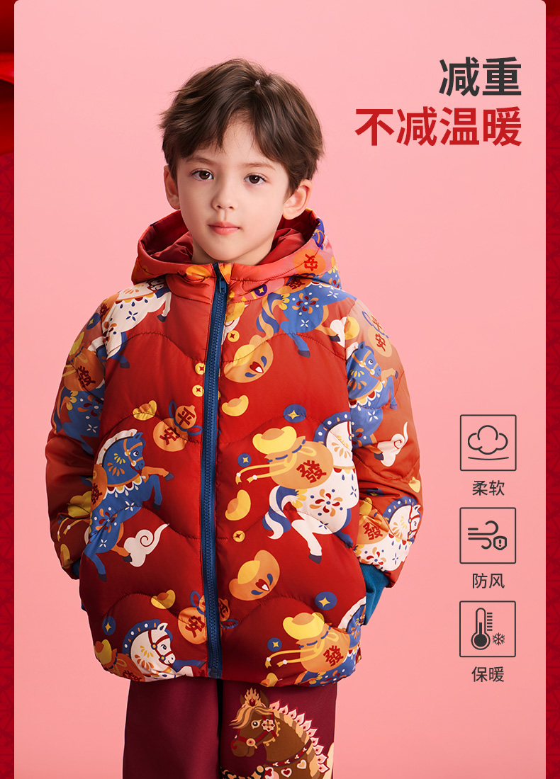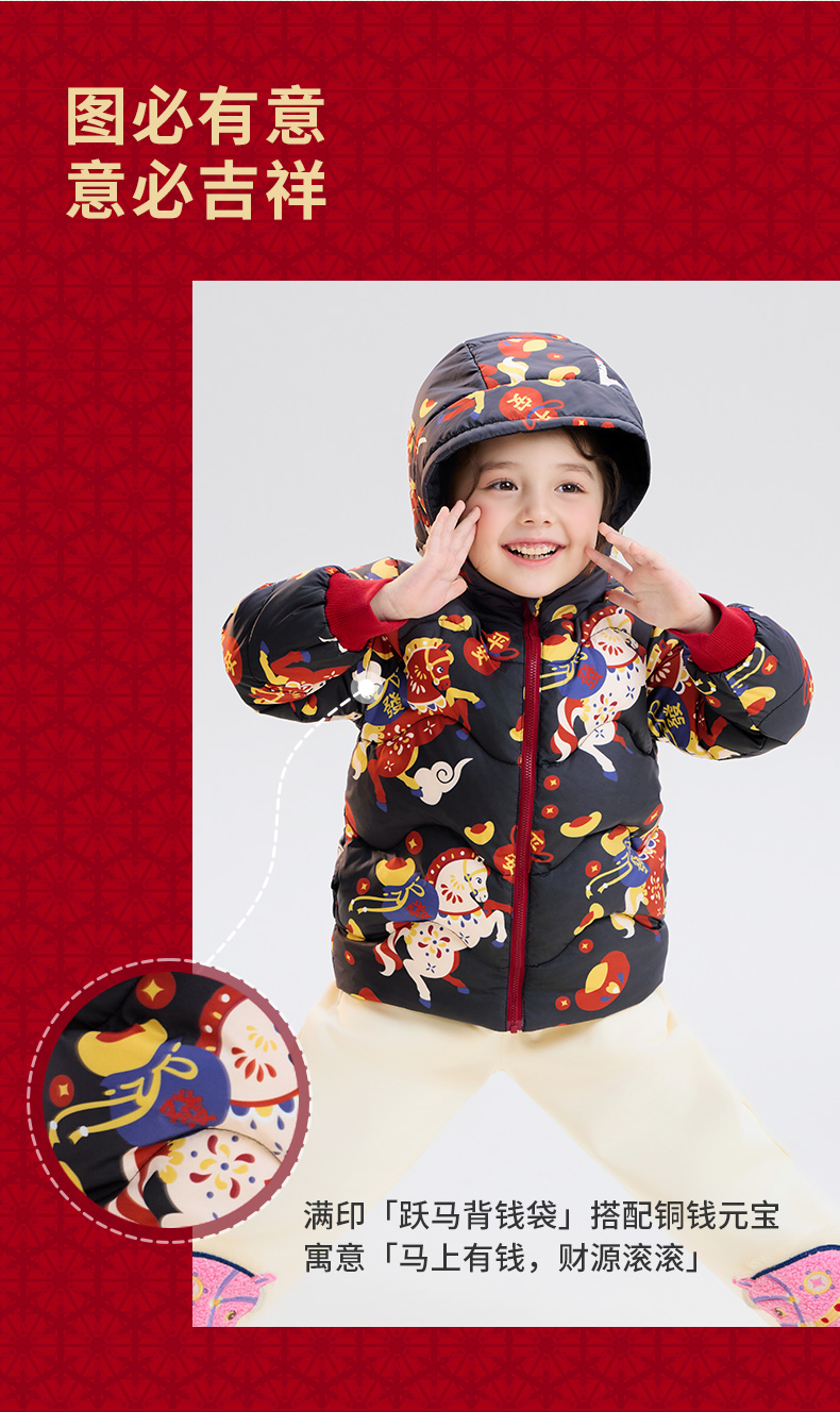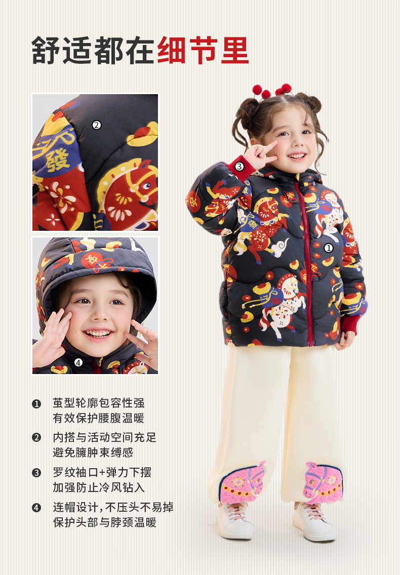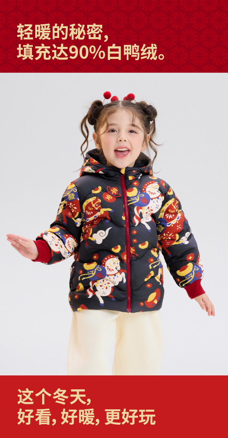 【年衣品牌团】年衣童装短裤羽绒服冬装新款男女童加厚鸭绒连帽马上有钱羽绒服 1207