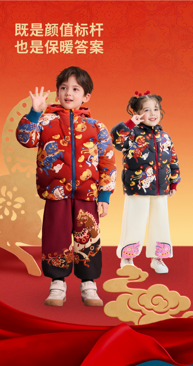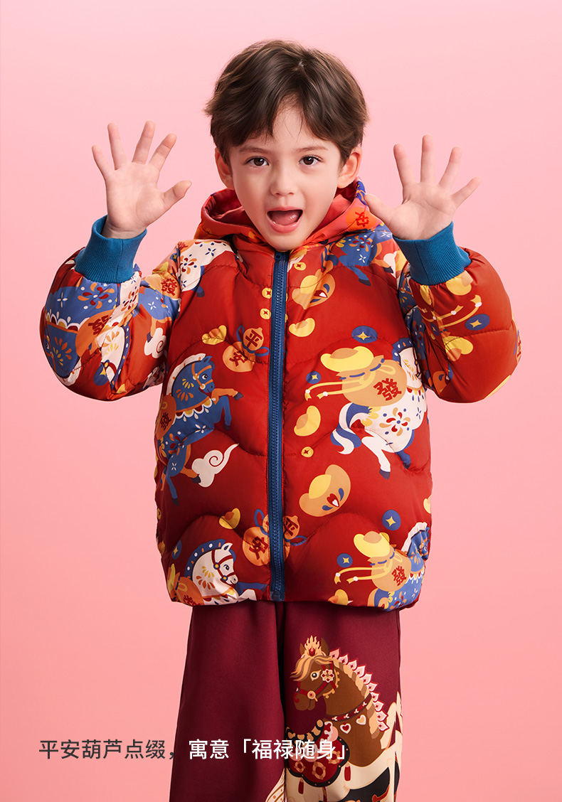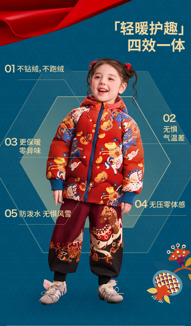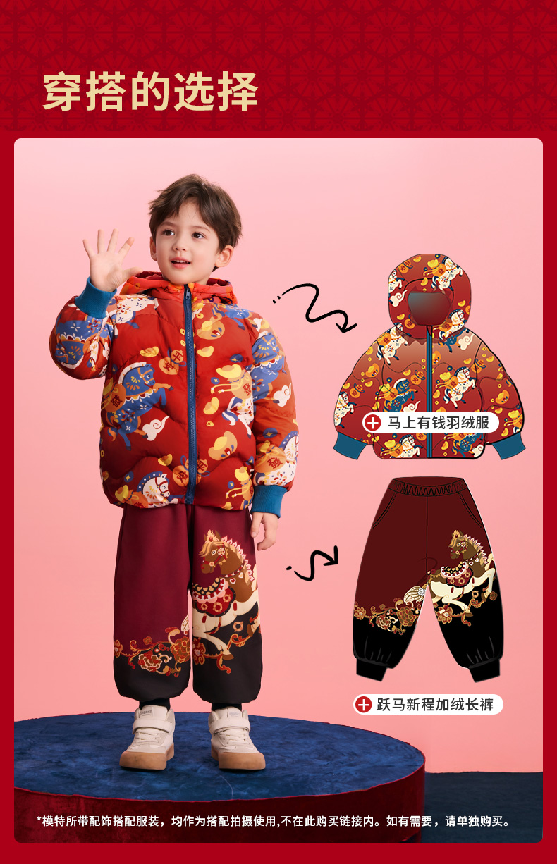 【年衣品牌团】年衣童装短裤羽绒服冬装新款男女童加厚鸭绒连帽马上有钱羽绒服 1207