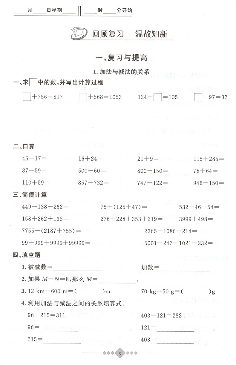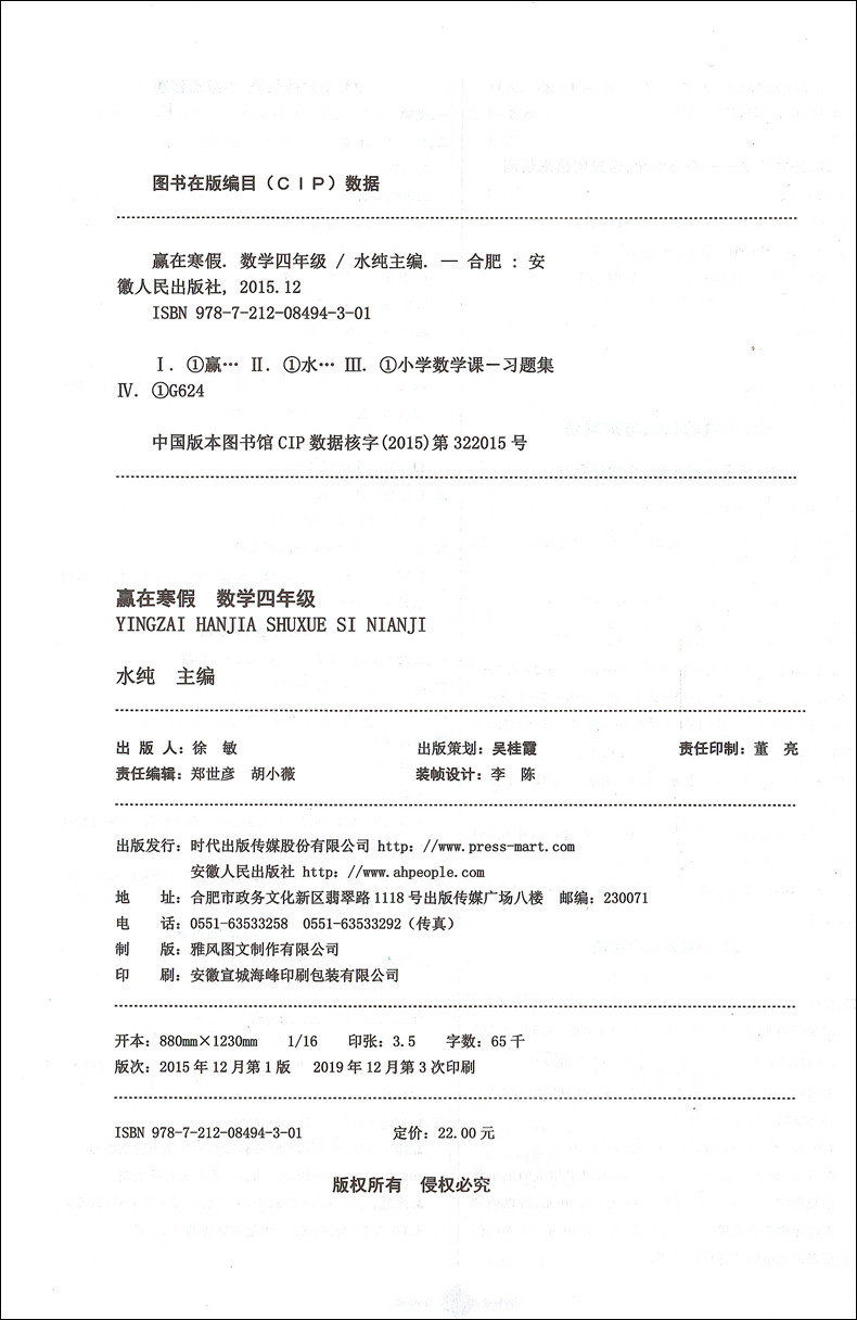 2020新版上海小学寒假作业 数学 4年级/四年级 赢在寒假 小学生寒假作业本练习册 基础巩固拓展提升新课预习 安徽人民出版社