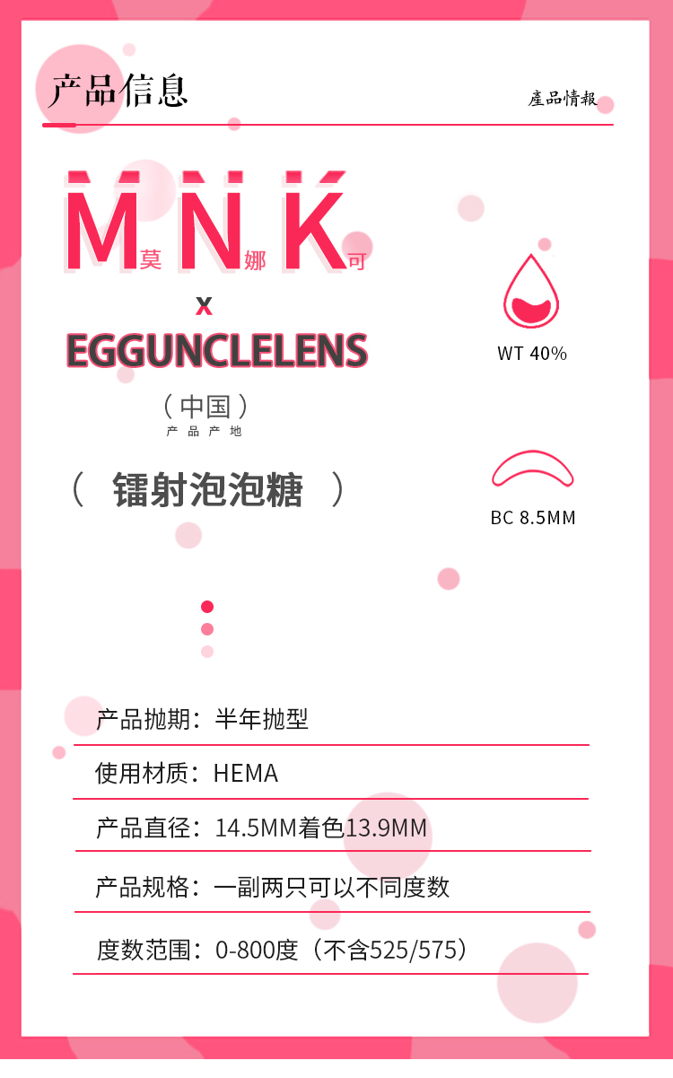 康视达 EggUncle Lens半年抛 镭射泡泡糖 直径14.5mm着色13.9mm
