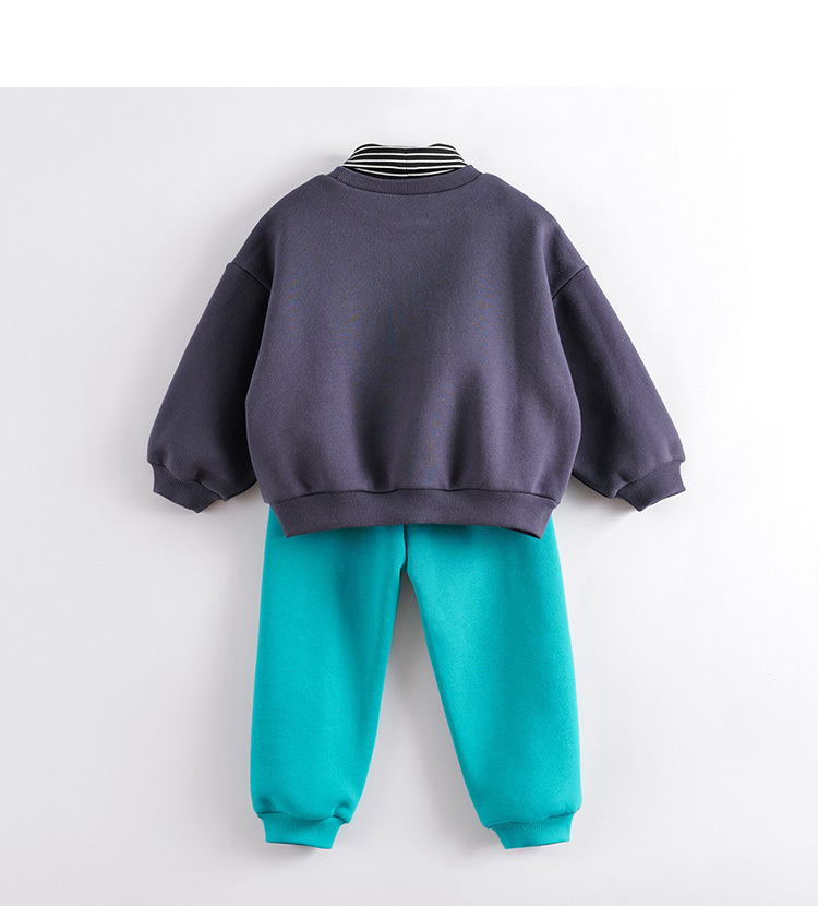 马克珍妮秋冬新款 男童印花高领加绒卫衣套装221169