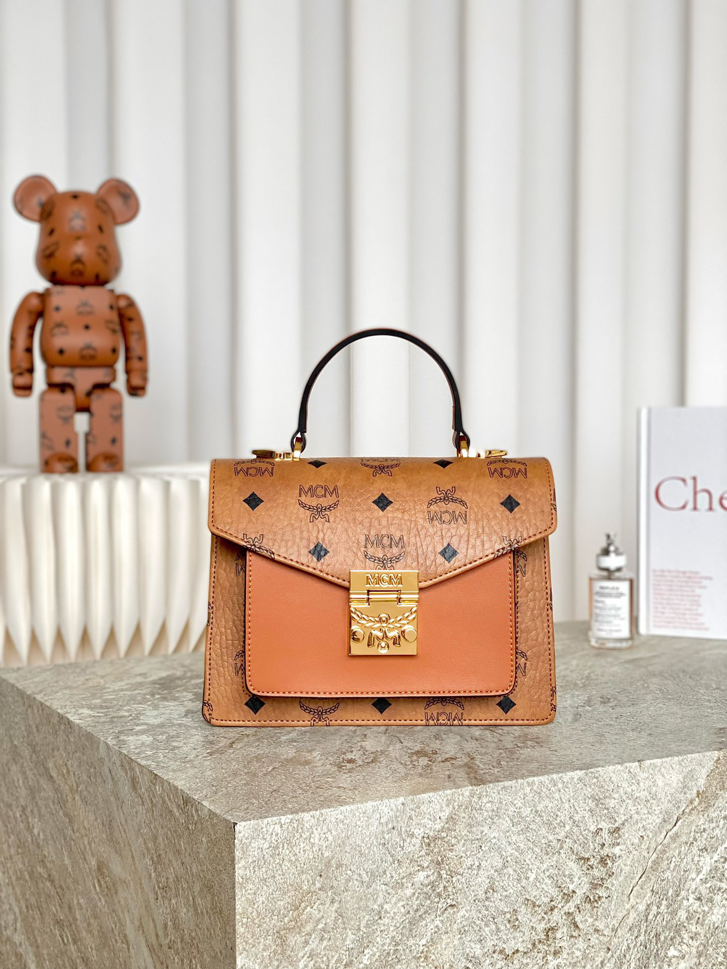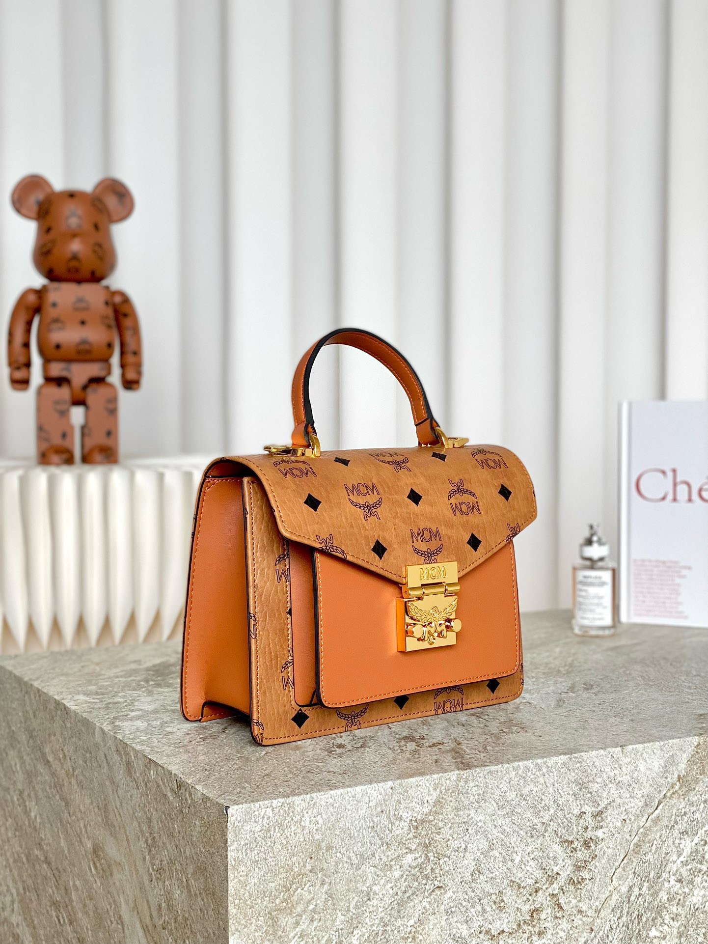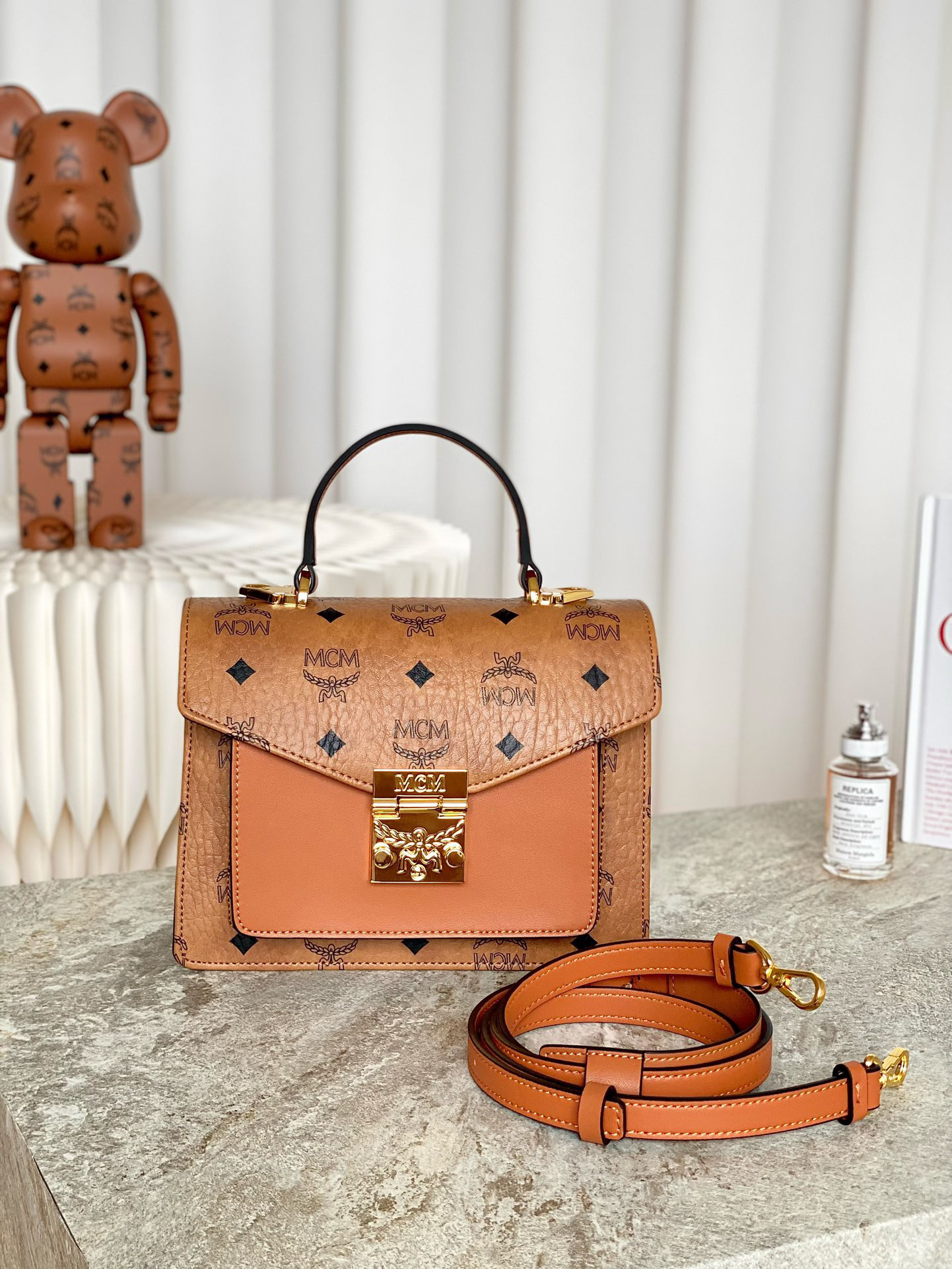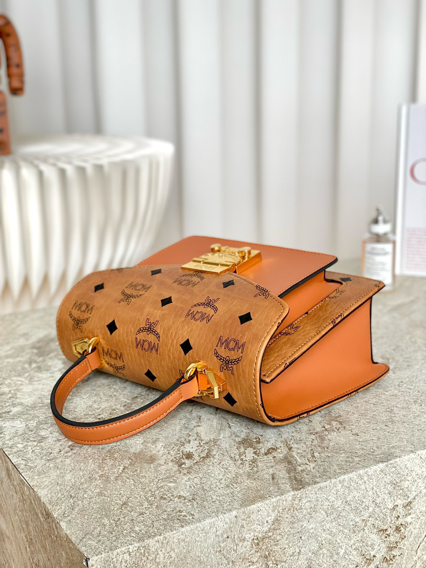 秋冬特惠💰800 原单MCM 原厂皮 定制级五金 手拧斜挎风琴包MWE8APA69CO001 经典干邑色 这款经典挎包