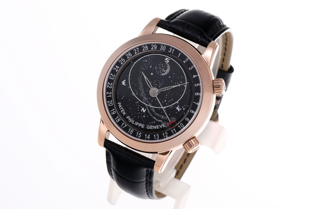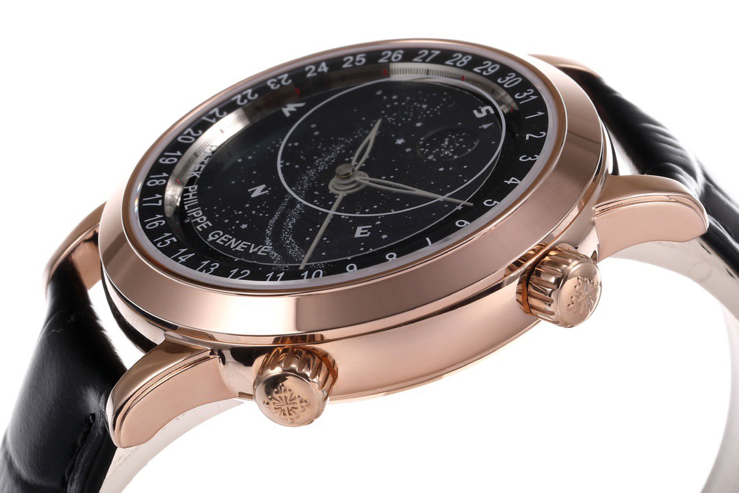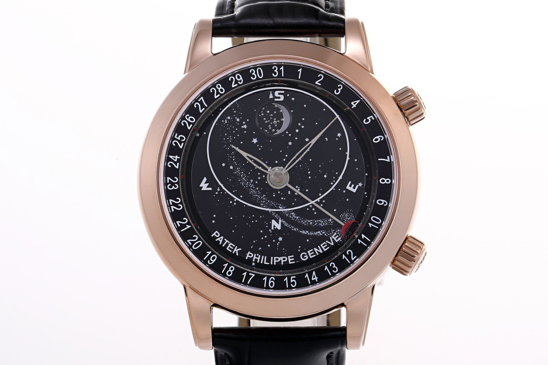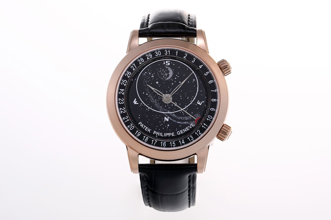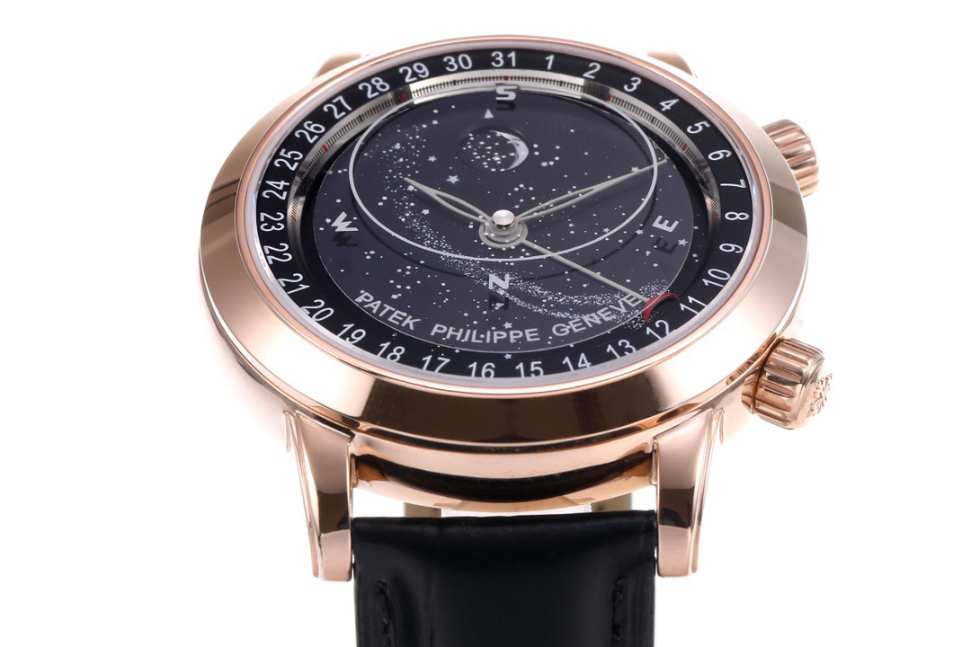 百达翡丽星空升级终极版6102款|6104款超级复杂功能系列。日内瓦苍穹系列你可想象把星空佩戴在腕上吗?这款星空腕表独具特别星象功能,蓝色圆表盘上就能欣赏日内瓦苍穹图,还有金色月球运行轨迹,熬时20个月 采用日本9015改造而成的珍珠陀,和正品一样机心 表盘上的月亮会根据天空的月亮月满圆月蚀弯的情况自动变化 表壳前后玻璃采用先进技术处理让玻璃折射光提高,让表盘看起来更加通透 似乎没有玻璃的感觉 后盖和玻璃也采用和正品一样凹型 打破传统手表后盖和玻璃平行,白光表壳在6字位表壳和表带连接处的宝石采用南非真钻 支持宝石检验,2字把头调时间,日历,月亮盘 5字位把头调星空盘转动。此表在手别无所求。