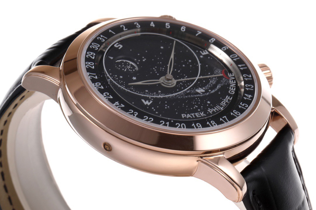 百达翡丽星空升级终极版6102款|6104款超级复杂功能系列。日内瓦苍穹系列你可想象把星空佩戴在腕上吗?这款星空腕表独具特别星象功能,蓝色圆表盘上就能欣赏日内瓦苍穹图,还有金色月球运行轨迹,熬时20个