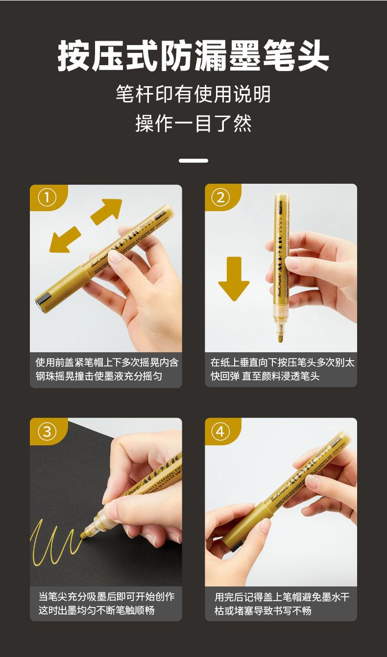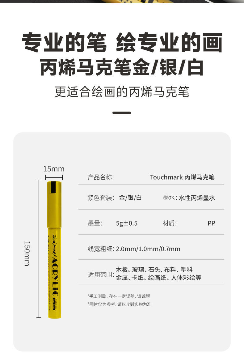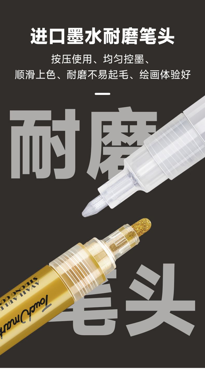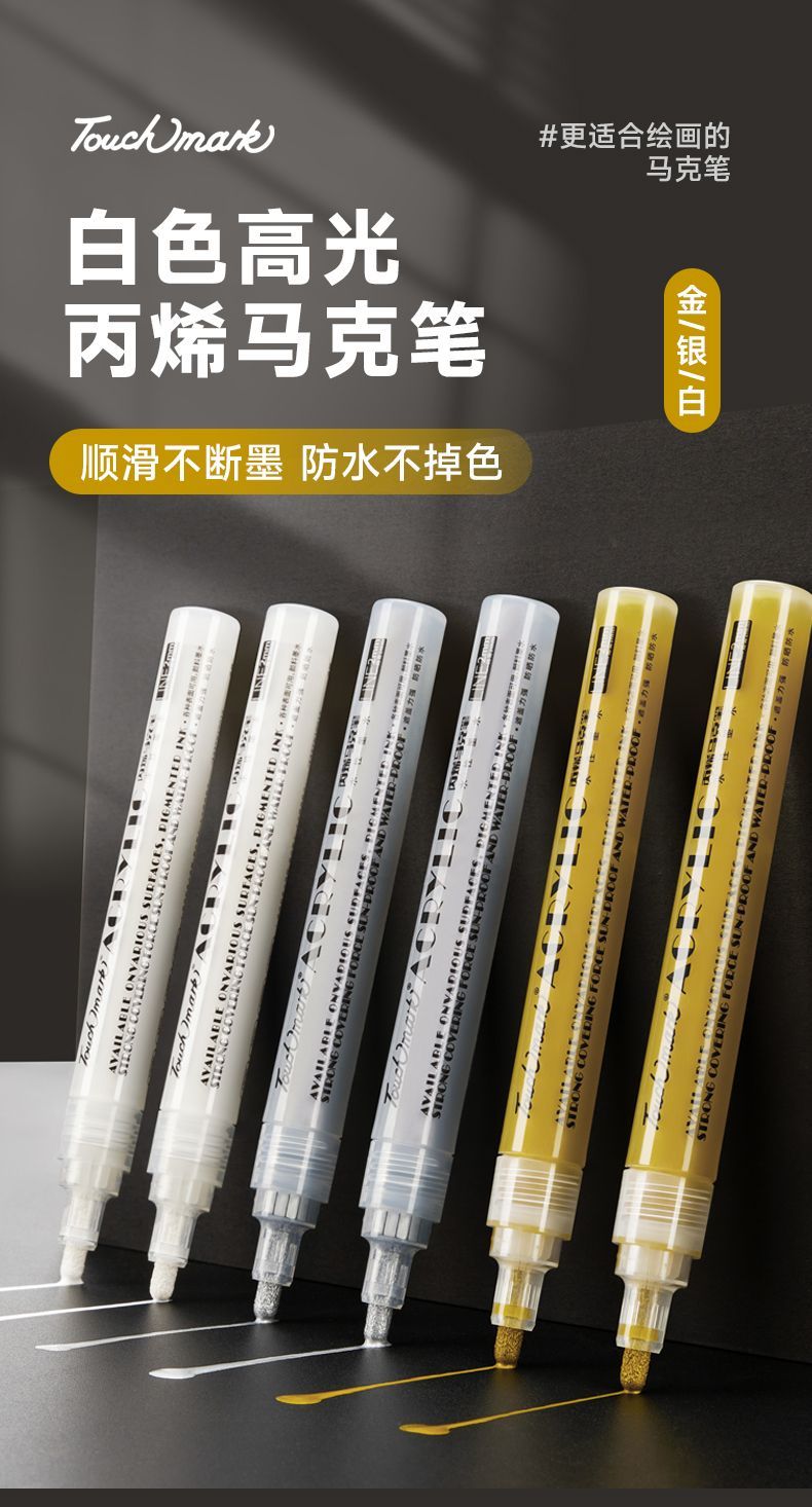 Touchmark泰驰马克-金白银按压丙烯马克笔-(可用于高光,勾线,涂鸦)