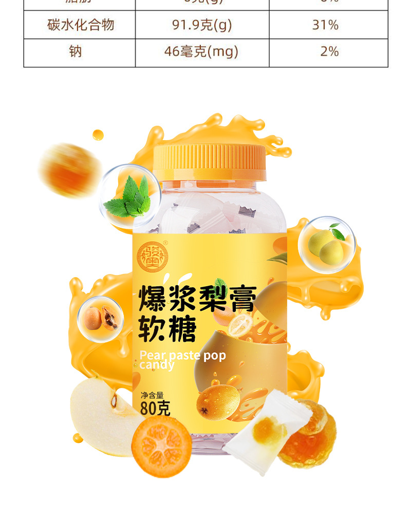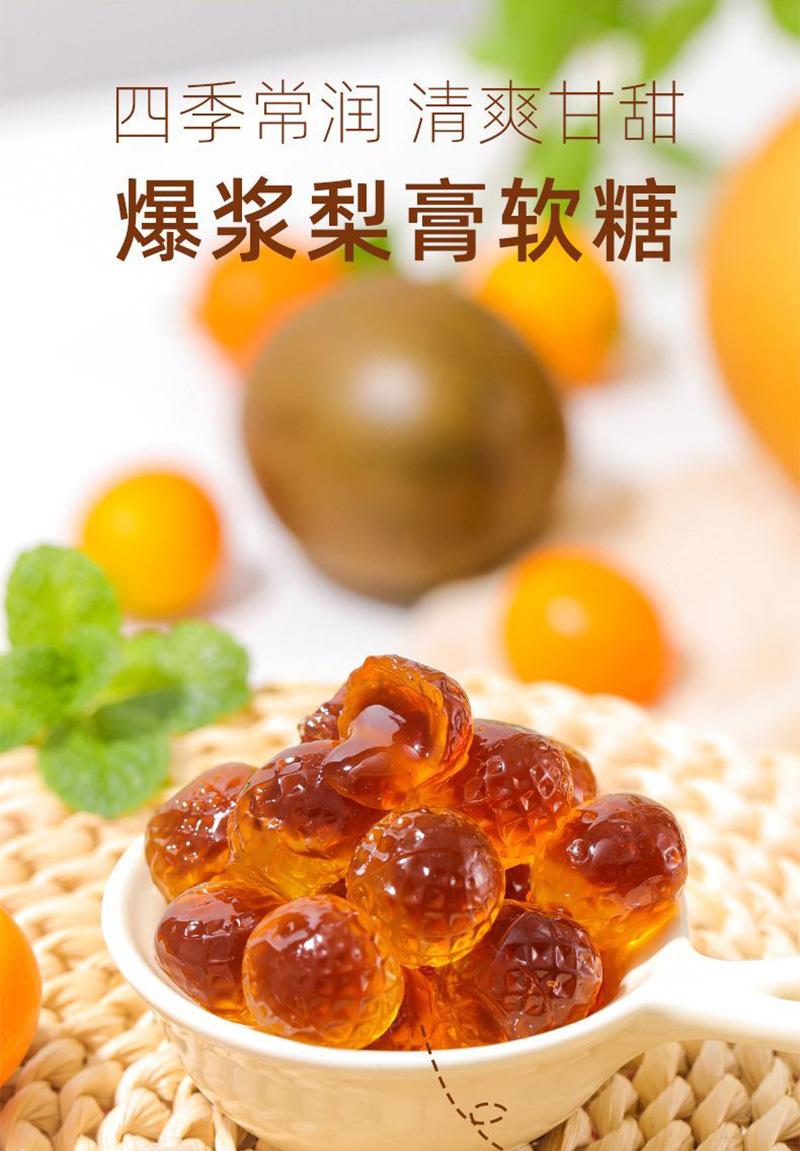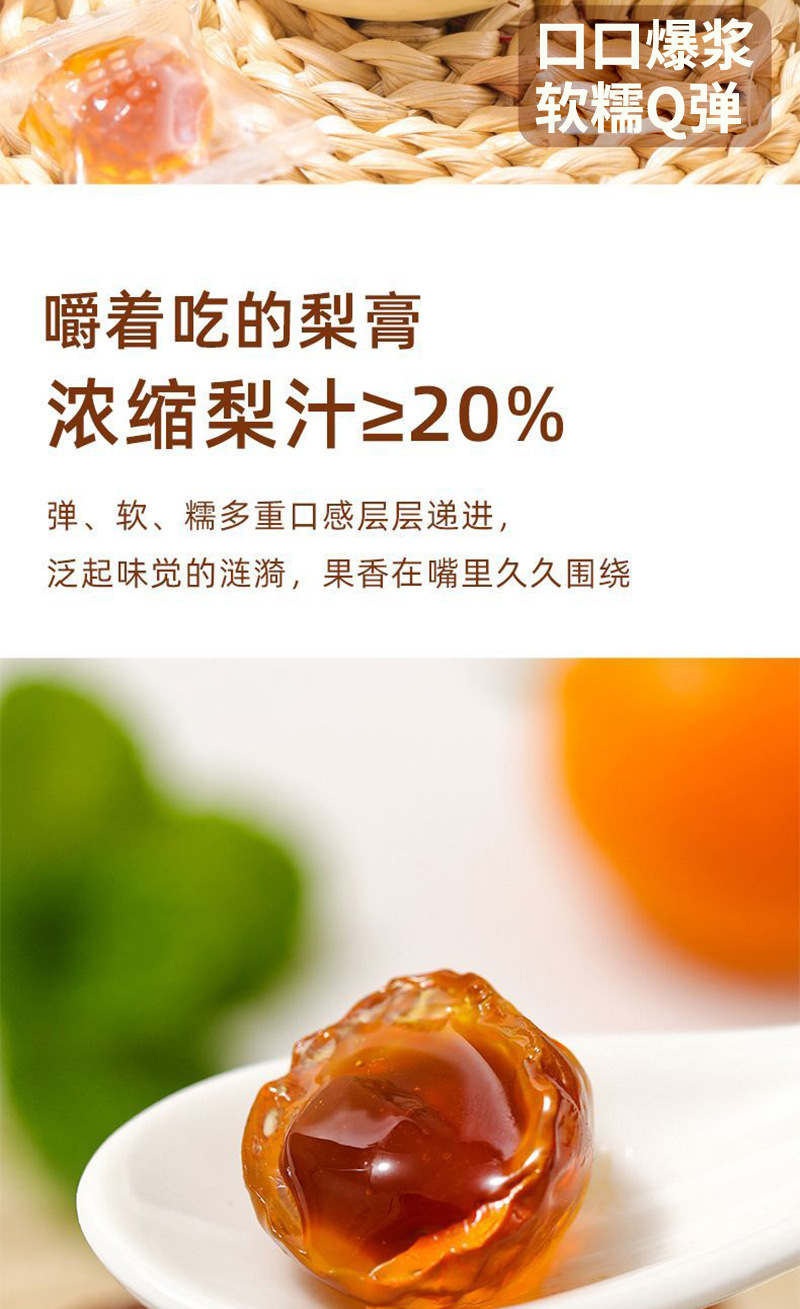【19.9抢3罐❗爆浆梨膏软糖】甄选秋梨+金桔+枇杷+罗汉果,Q弹软糯,咽喉好伴侣!网红爆浆软糖甘甜慈梨膏解馋水果夹心糖润喉零食L