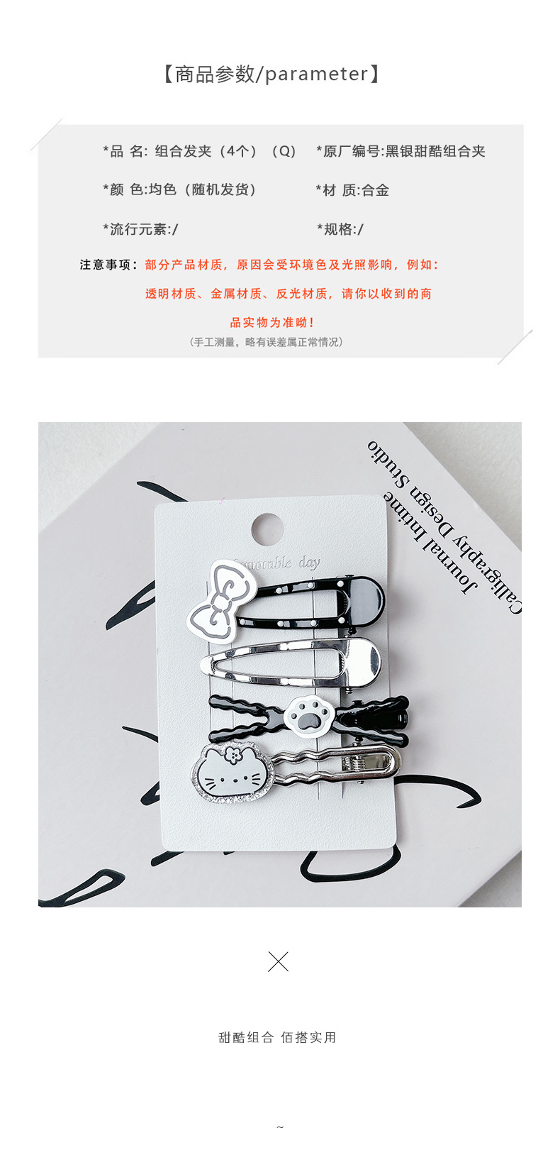 黑银甜酷组合夹组合发夹(4个)-纪念日百货门店同款169149476