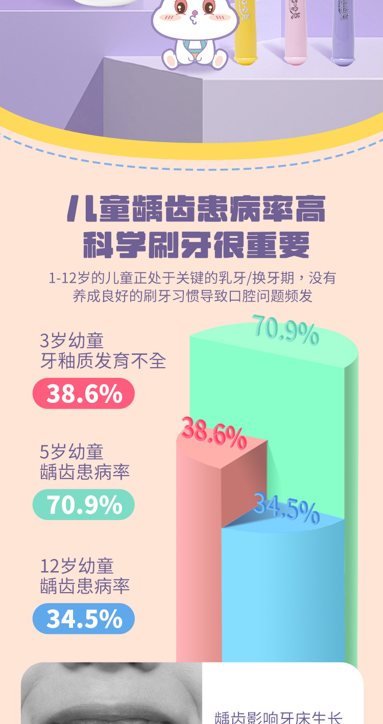 【迅必诺】咕噜兔儿童防蛀牙膏奥拉氟国际防蛀成分预防龋齿