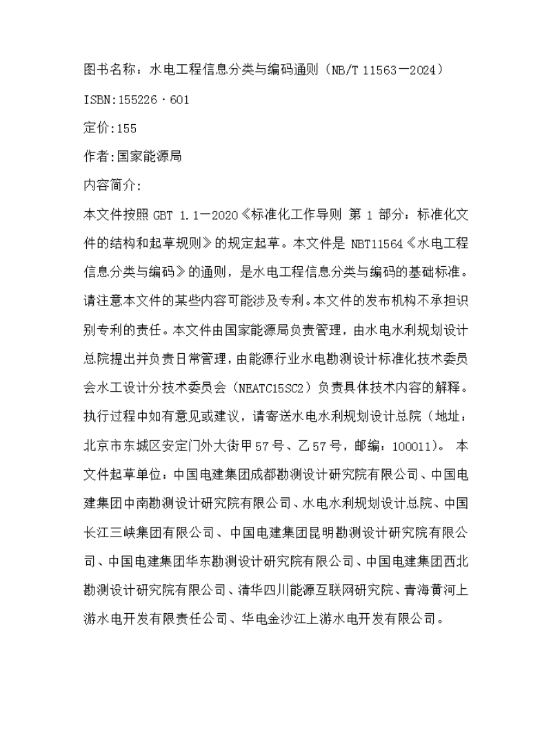 水电工程信息分类与编码通则(NB/T 11563—2024)