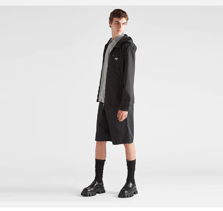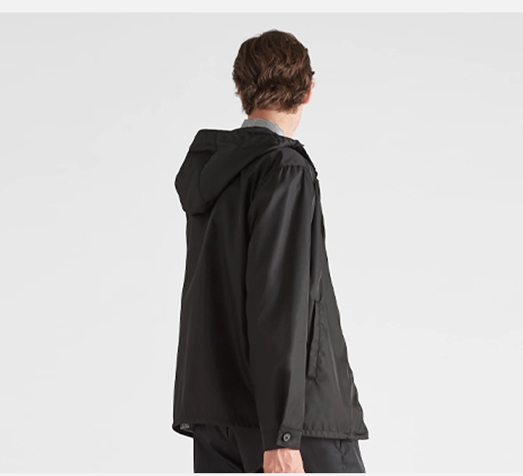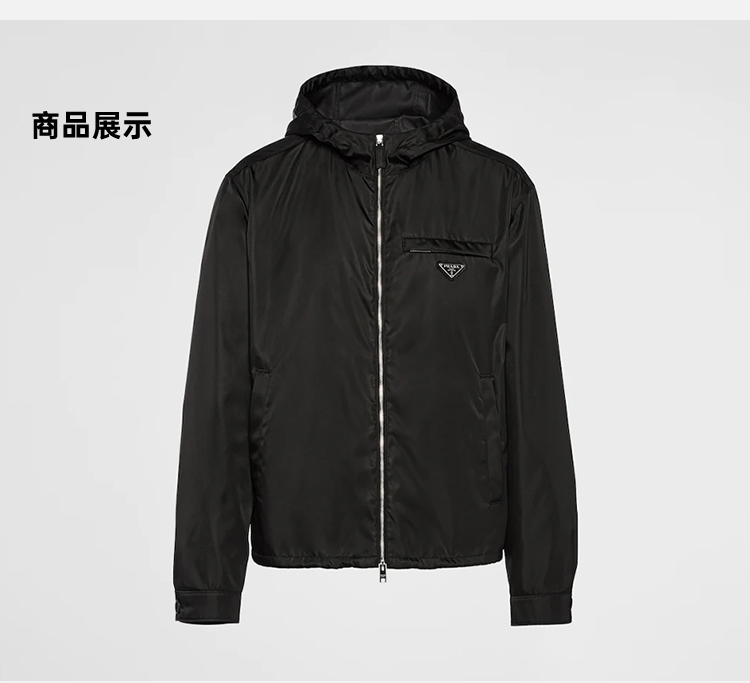 PRADA 普拉达 男士 Re-Nylon 再生尼龙珐琅金属三角形徽标连帽外套 黑色 SGB685 1WQ8 F0002