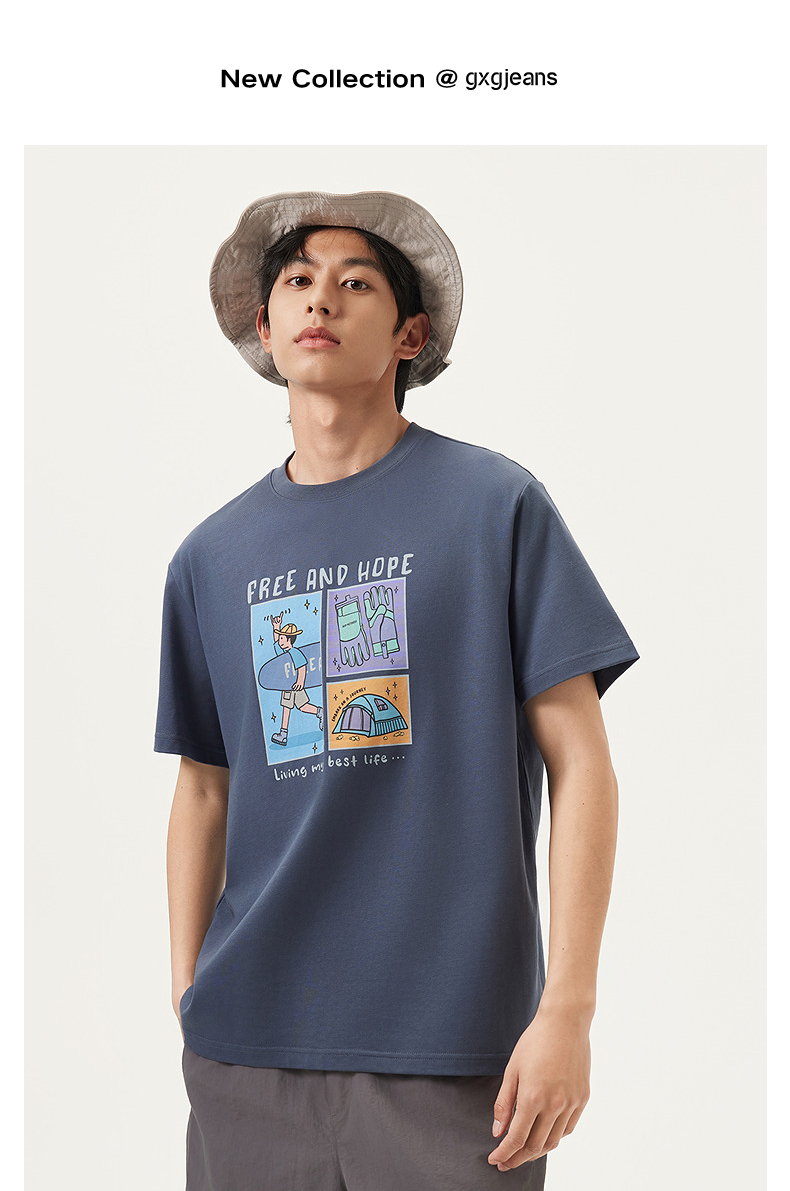 gxg.jeans男装 多色趣味图案潮流时尚宽松美式短袖T恤男 25夏热卖