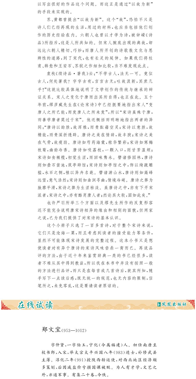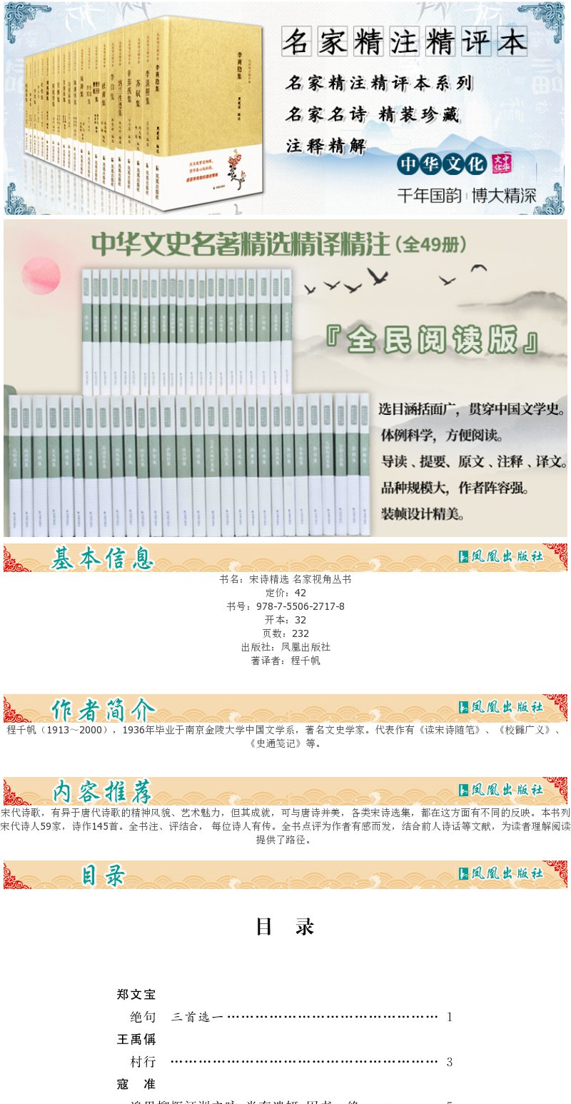 宋诗精选 名家视角丛书 程千帆编选 本书列宋代诗人59家 诗作145首 全书注 评结合 带您领略中国古代诗歌史上与唐诗并峙的宋诗高峰