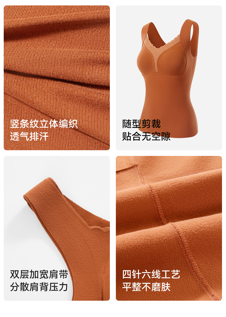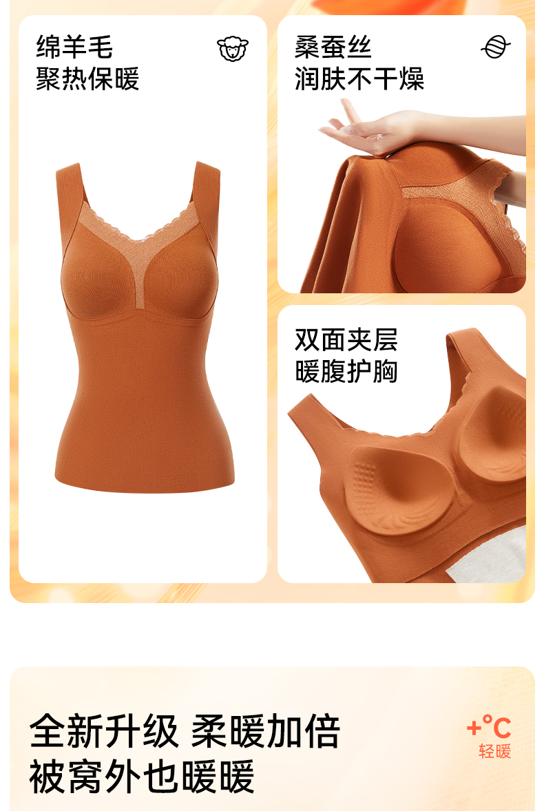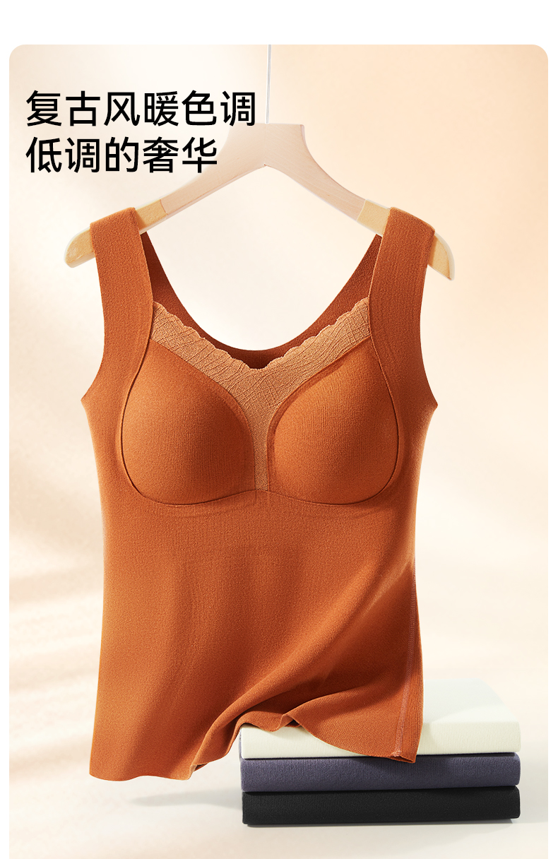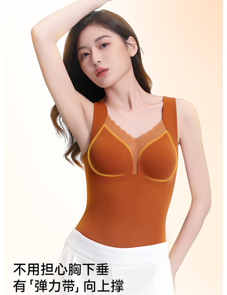 彗星天使秋冬不显赘肉V领蕾丝云柔暖绒可外穿可内搭女士保暖背心818#