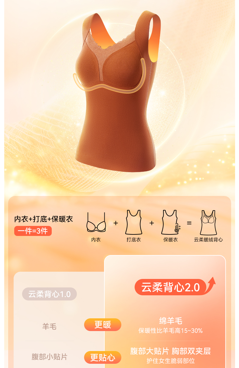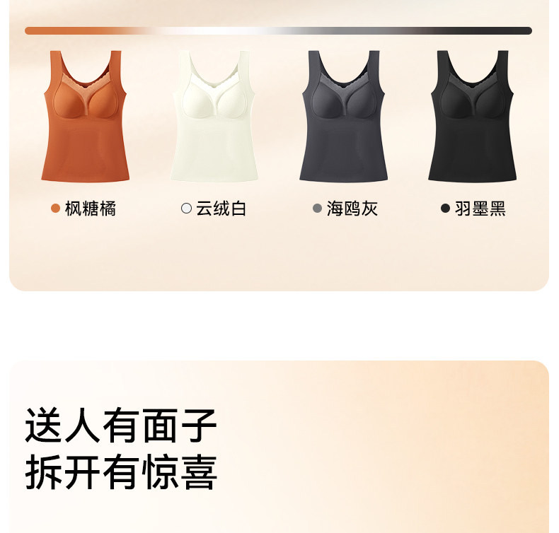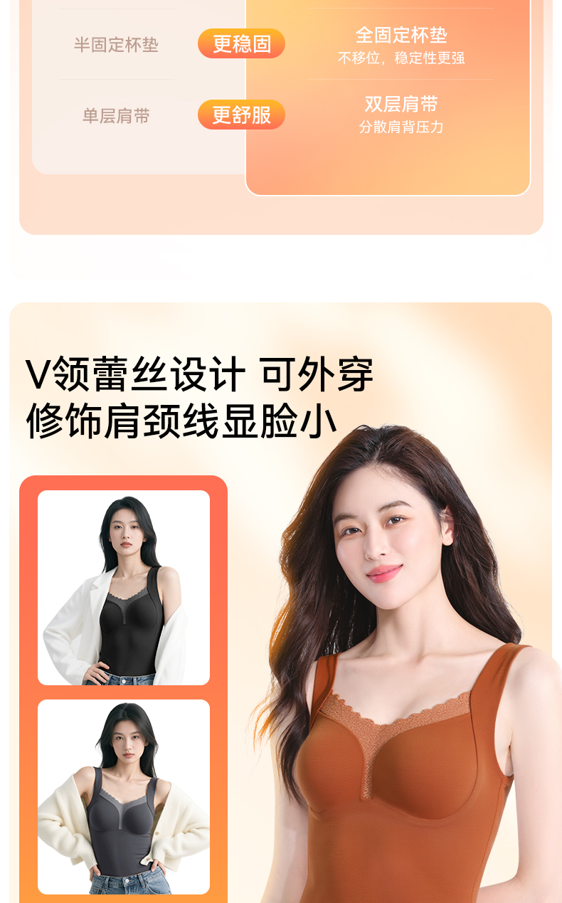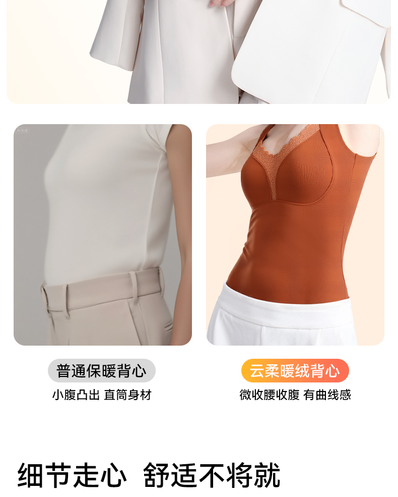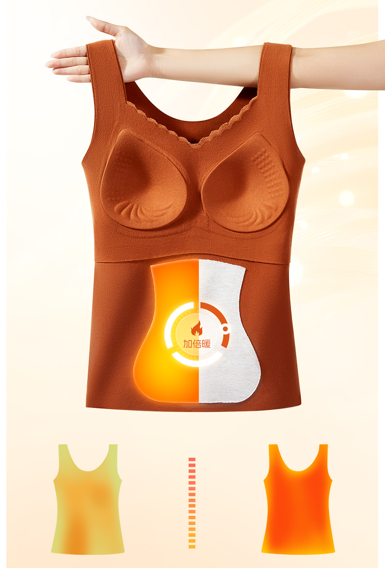 彗星天使秋冬不显赘肉V领蕾丝云柔暖绒可外穿可内搭女士保暖背心818#