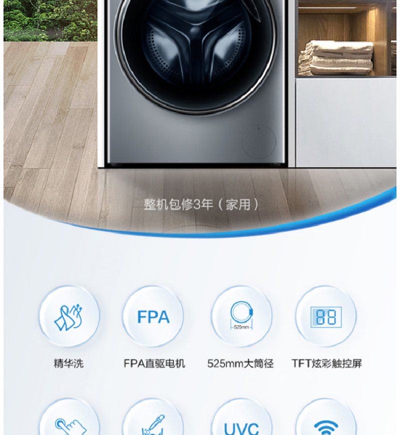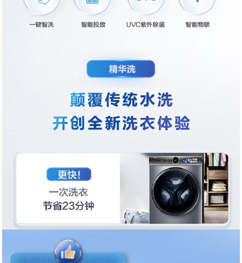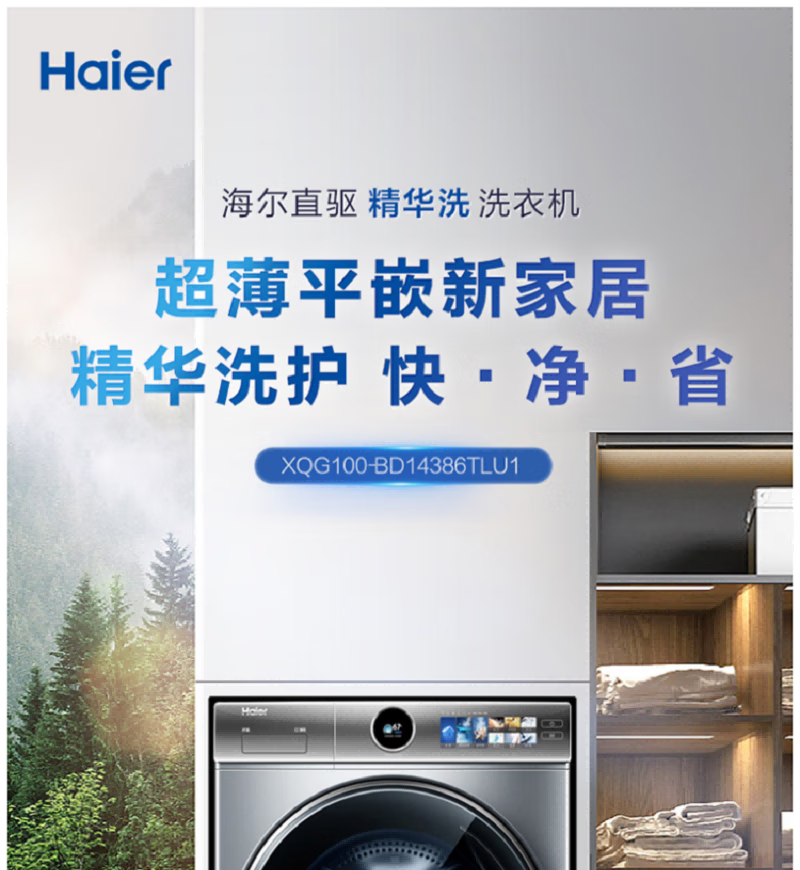 海尔(Haier)直驱变频智能投放精华洗10kg洗衣机XQG100-BD14386TLU1