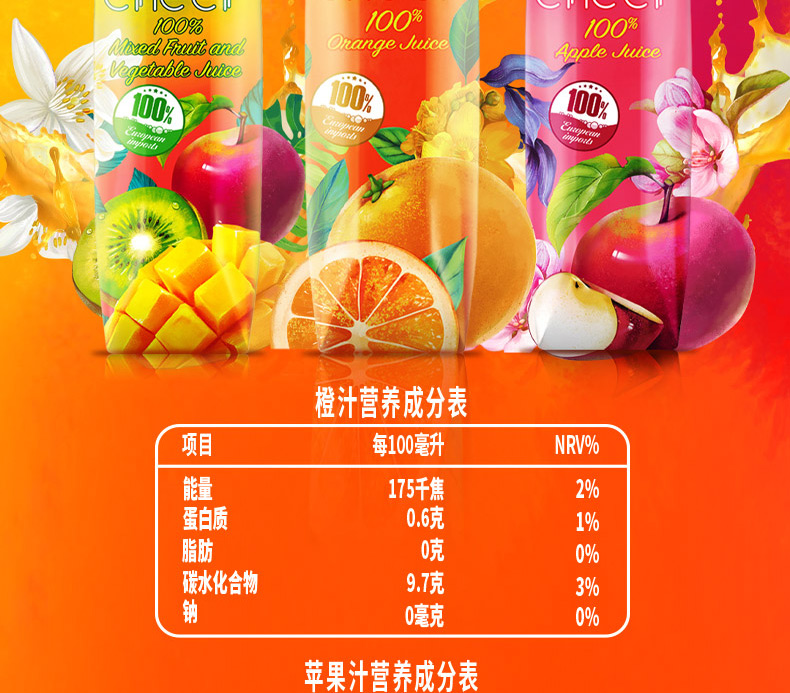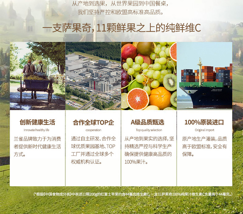 兰雀萨果奇 纯鲜100% 纯果汁 苹果汁 3支 果蔬汁2支 1L*5 礼盒装