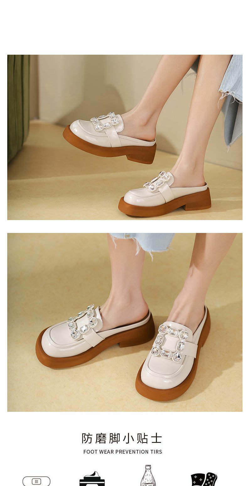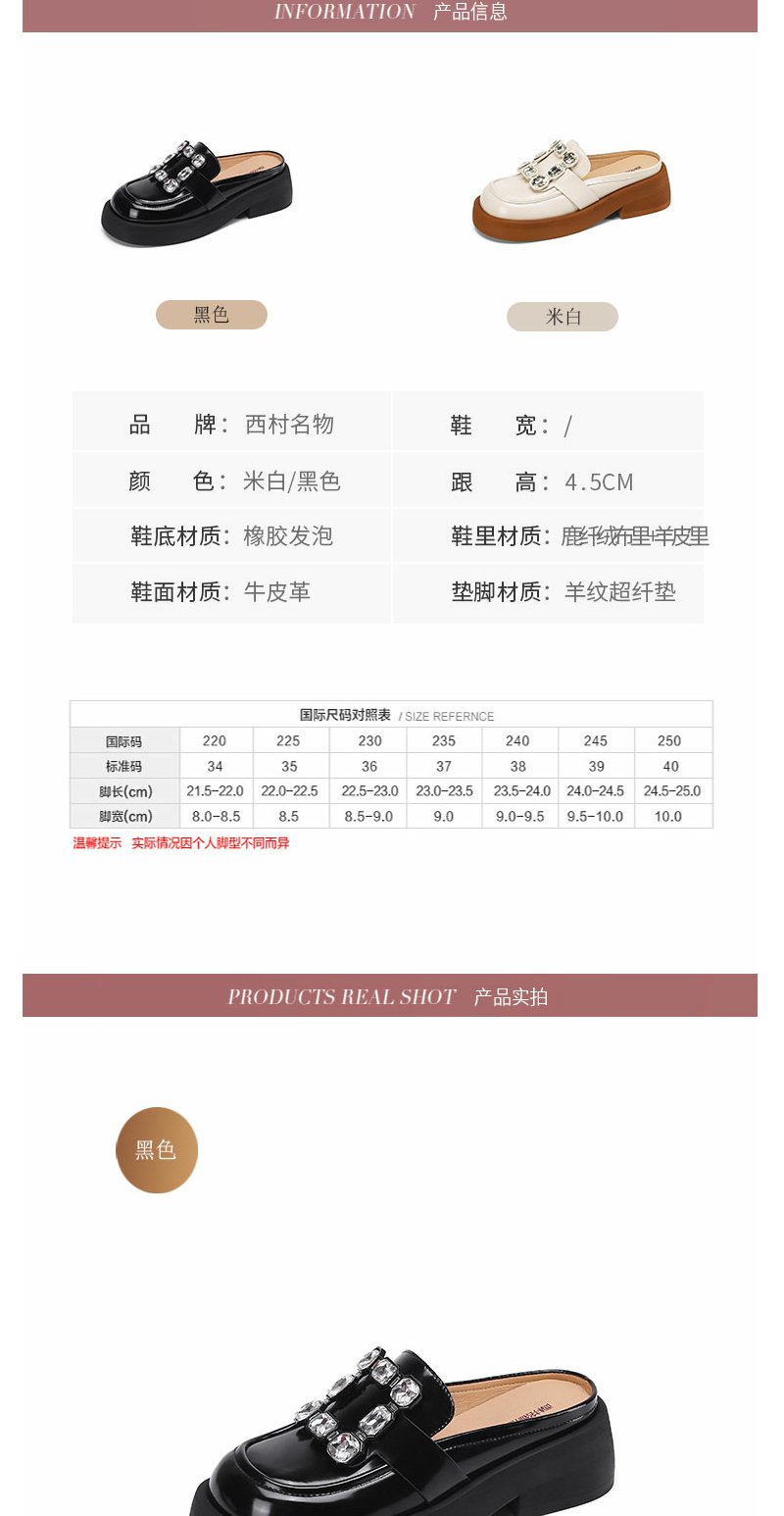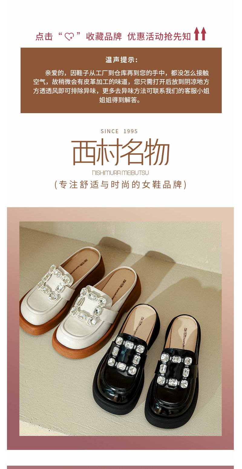 西村名物2022年夏新款英伦风半包拖鞋外穿女拖鞋11011