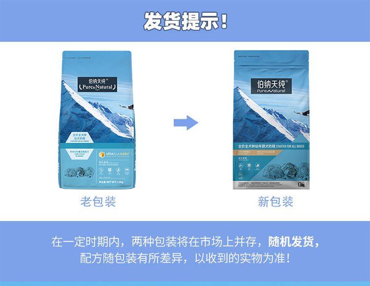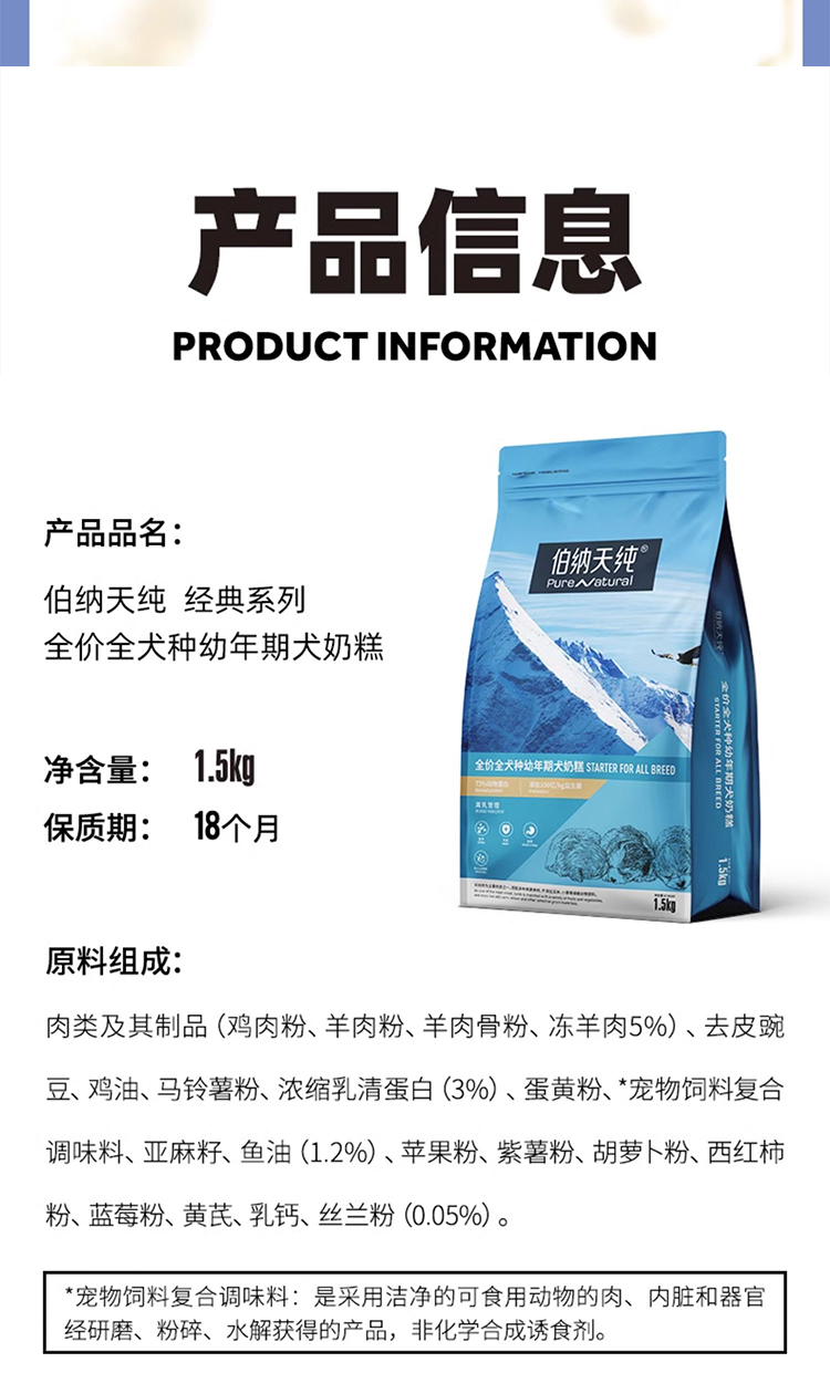 伯纳天纯狗粮全犬种幼犬奶糕粮泰迪金毛主粮1.5kg颗粒奶糕粮