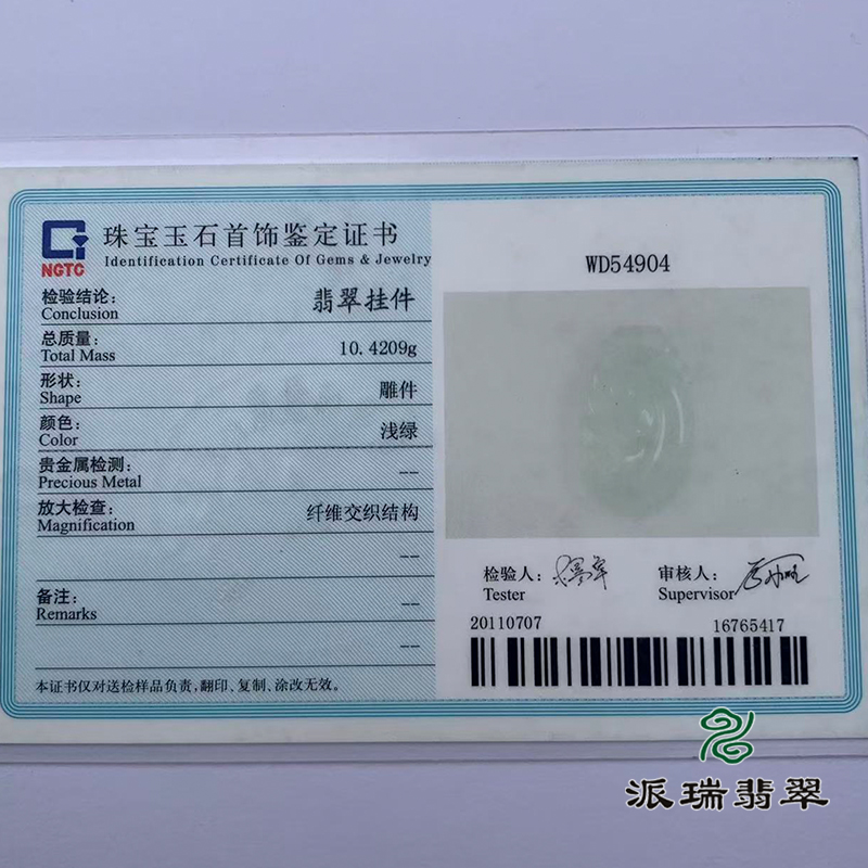 派瑞翡翠 翡翠挂件 糯种 浅绿