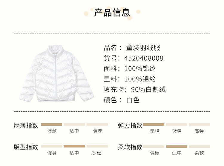 | 填充物: 白鹅绒 | 货号: 4520408008 |