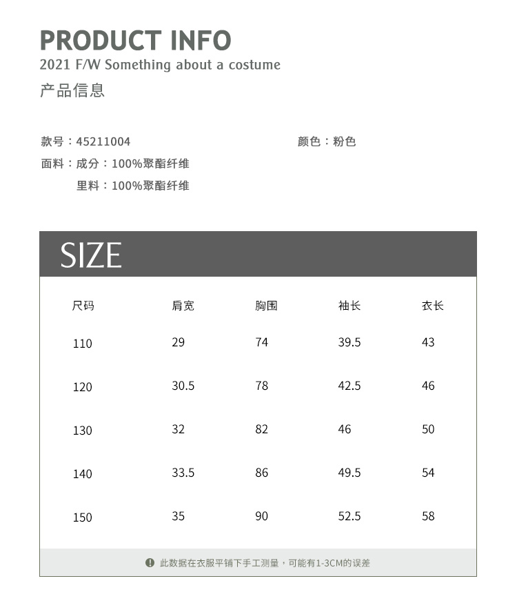 | 货号: 45211004 | 参考身高: 110/52 120/56 130/60 140/64 150/68 |