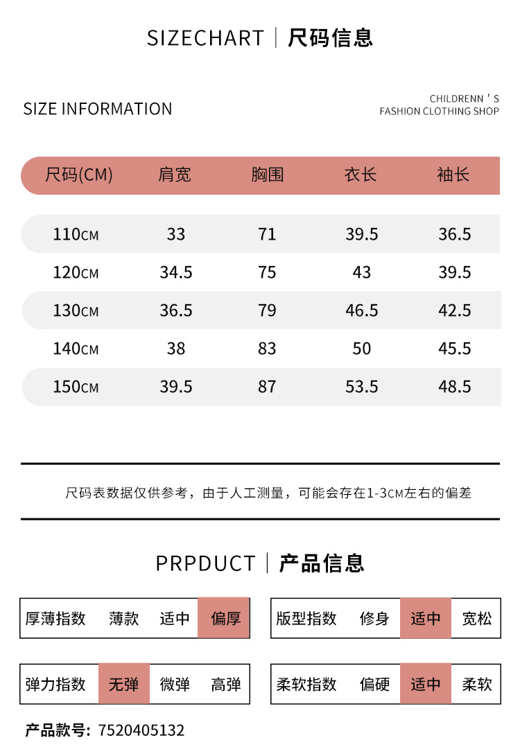 | 内胆类型: 毛内胆 | 参考身高: 110/52 120/56 130/60 140/64 150/68 |