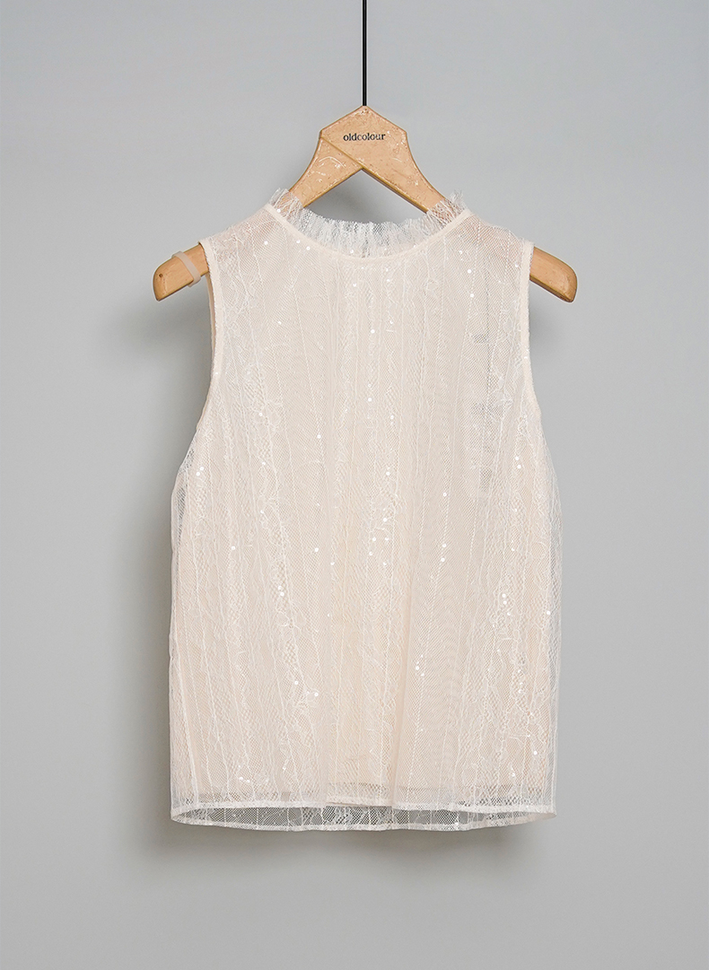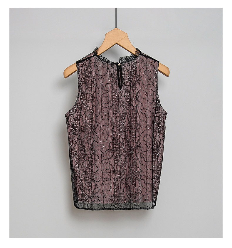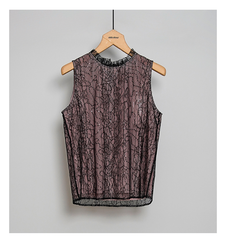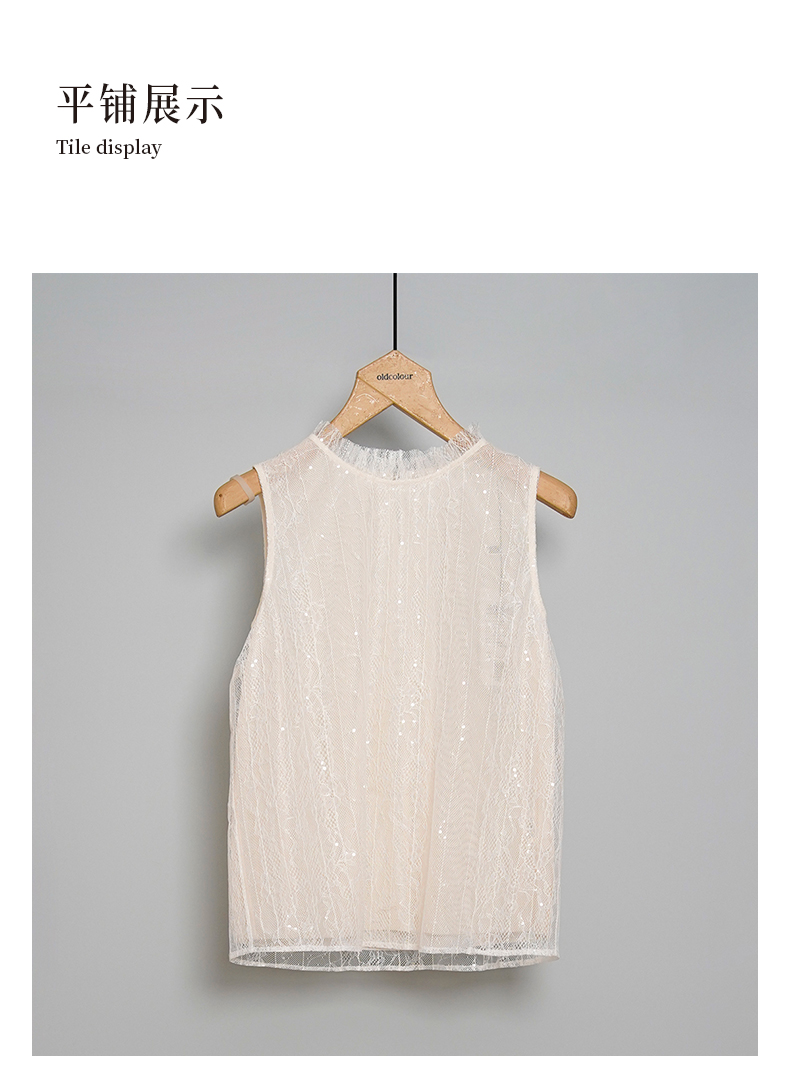 oldcolour时尚气质百搭亮片蕾丝背心无袖套头衫N10008247