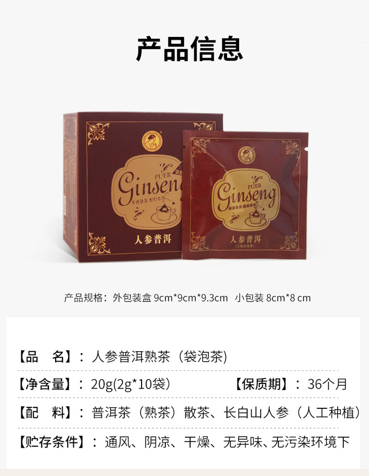 【积分兑换】澜沧古茶茶妈妈人参普洱袋泡茶三角茶包普洱茶熟茶茶叶花茶2g*10