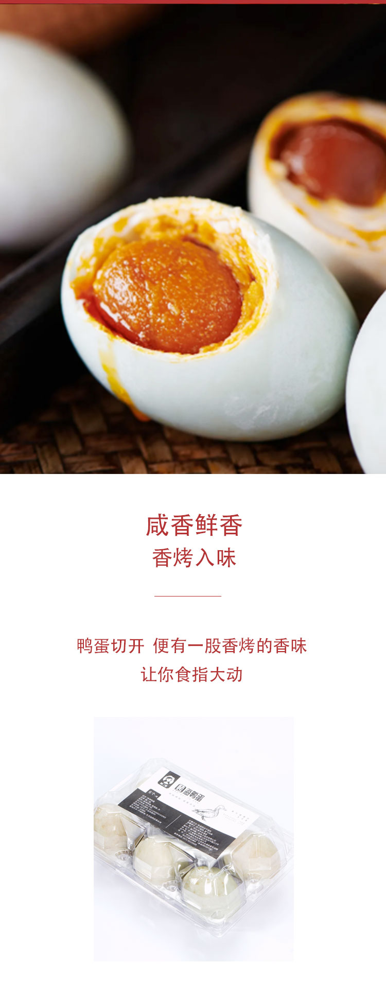 【流油起沙 咸香可口】海鸭咸蛋 广西北海 红树林海鸭蛋 蛋白细嫩咸淡适宜 浓香蛋黄饱满 好吃不腻口 6个/盒 包装更新 新老包装随机发