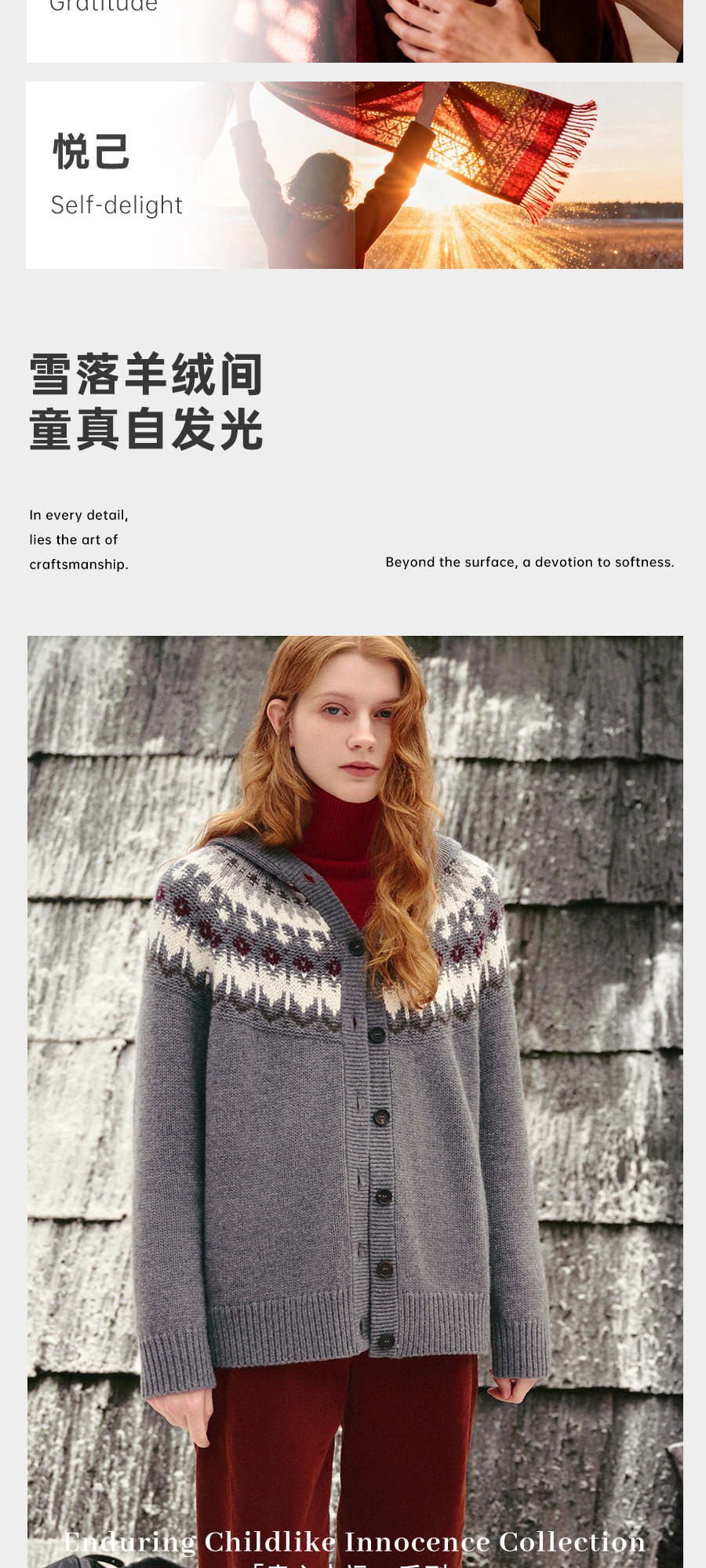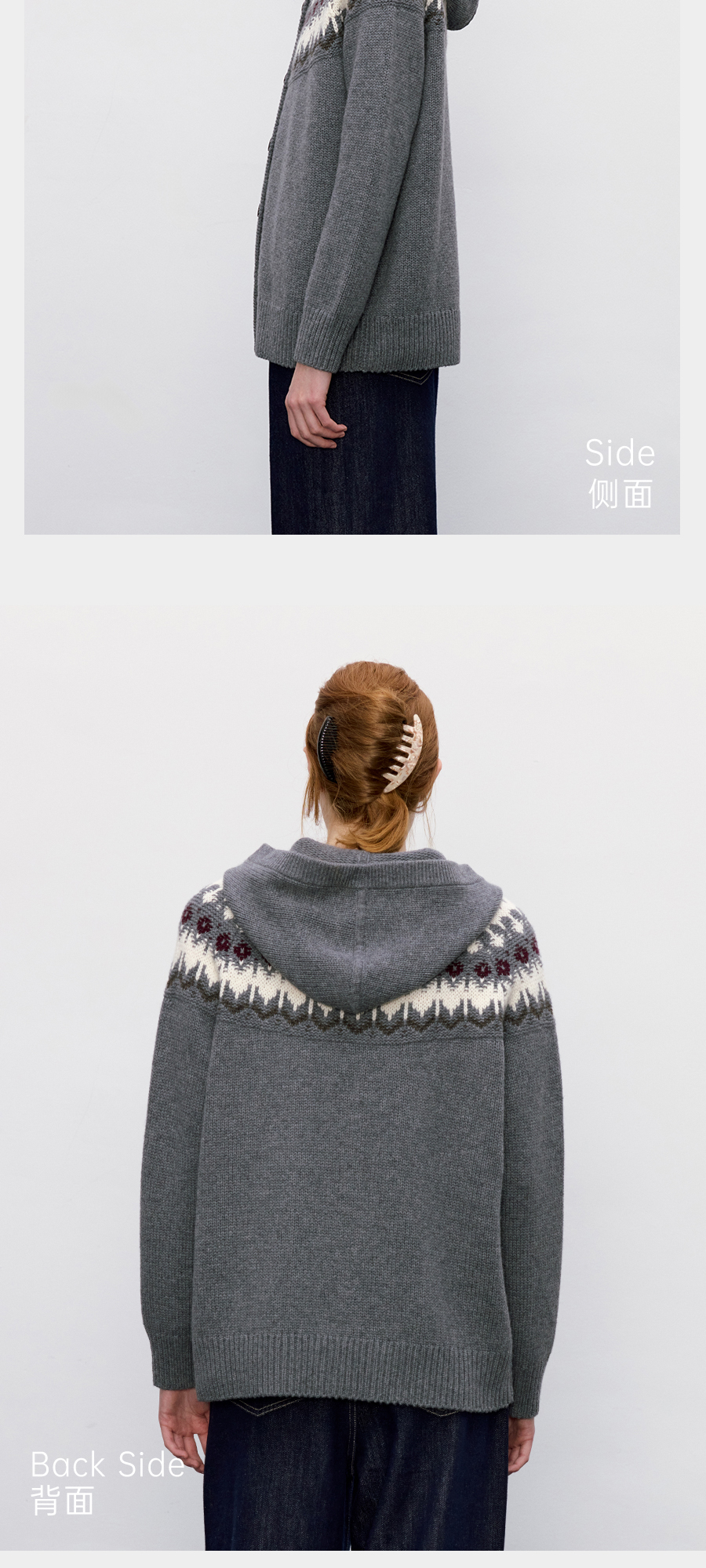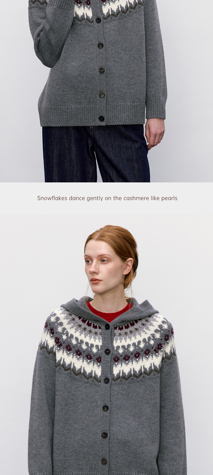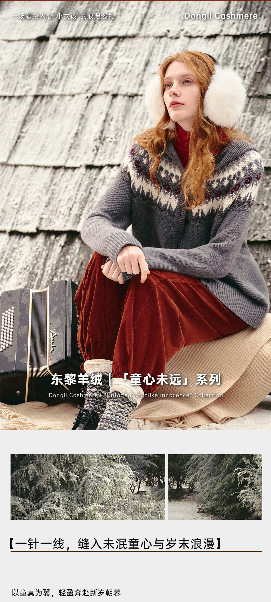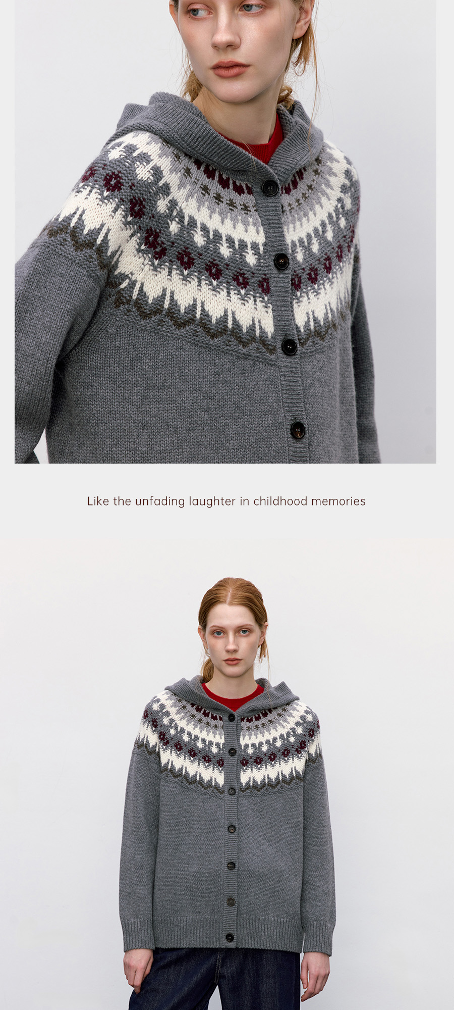 东黎 • 童心未远 手风琴 山羊绒女士冬季提花连帽开衫 5560