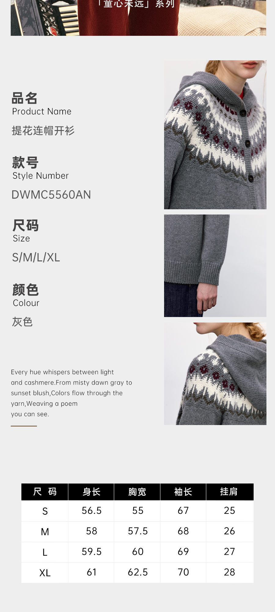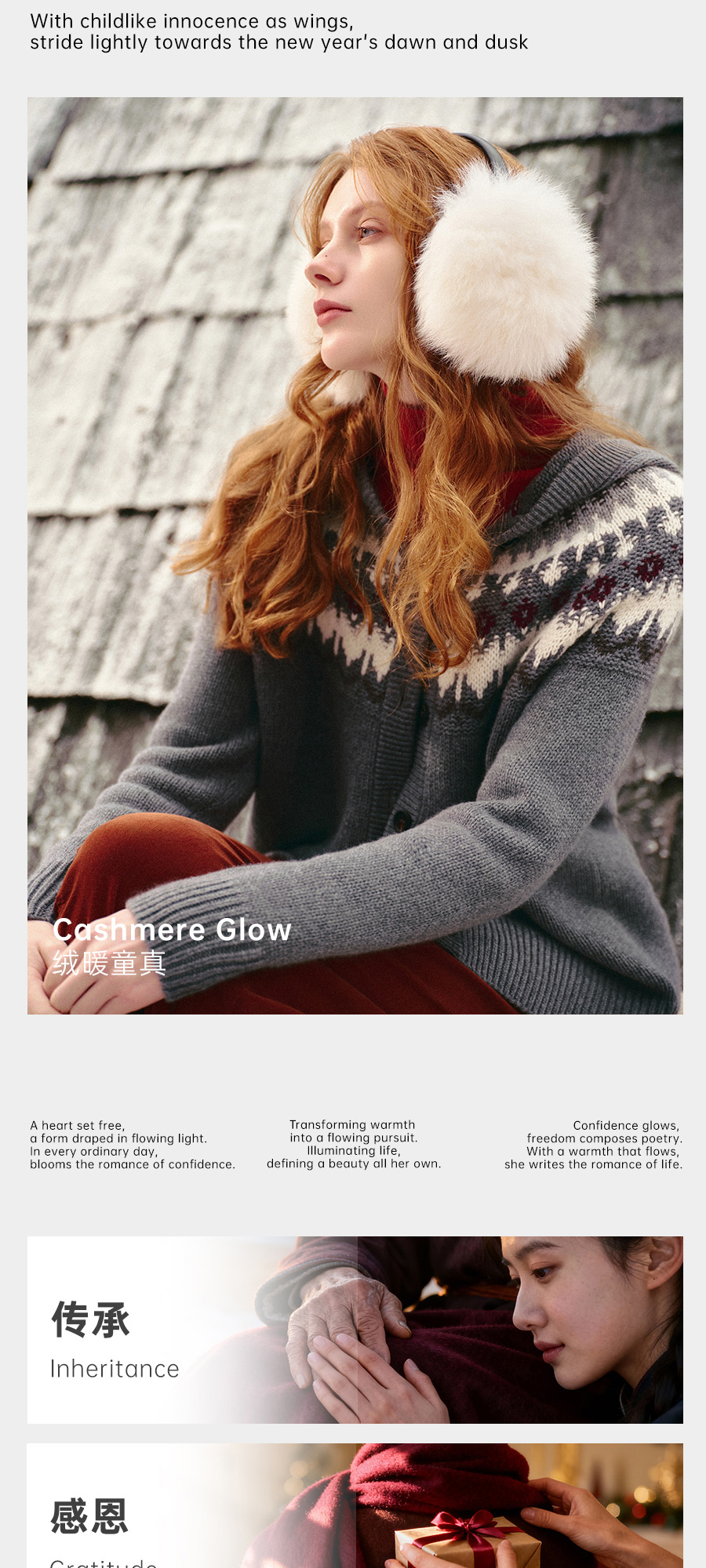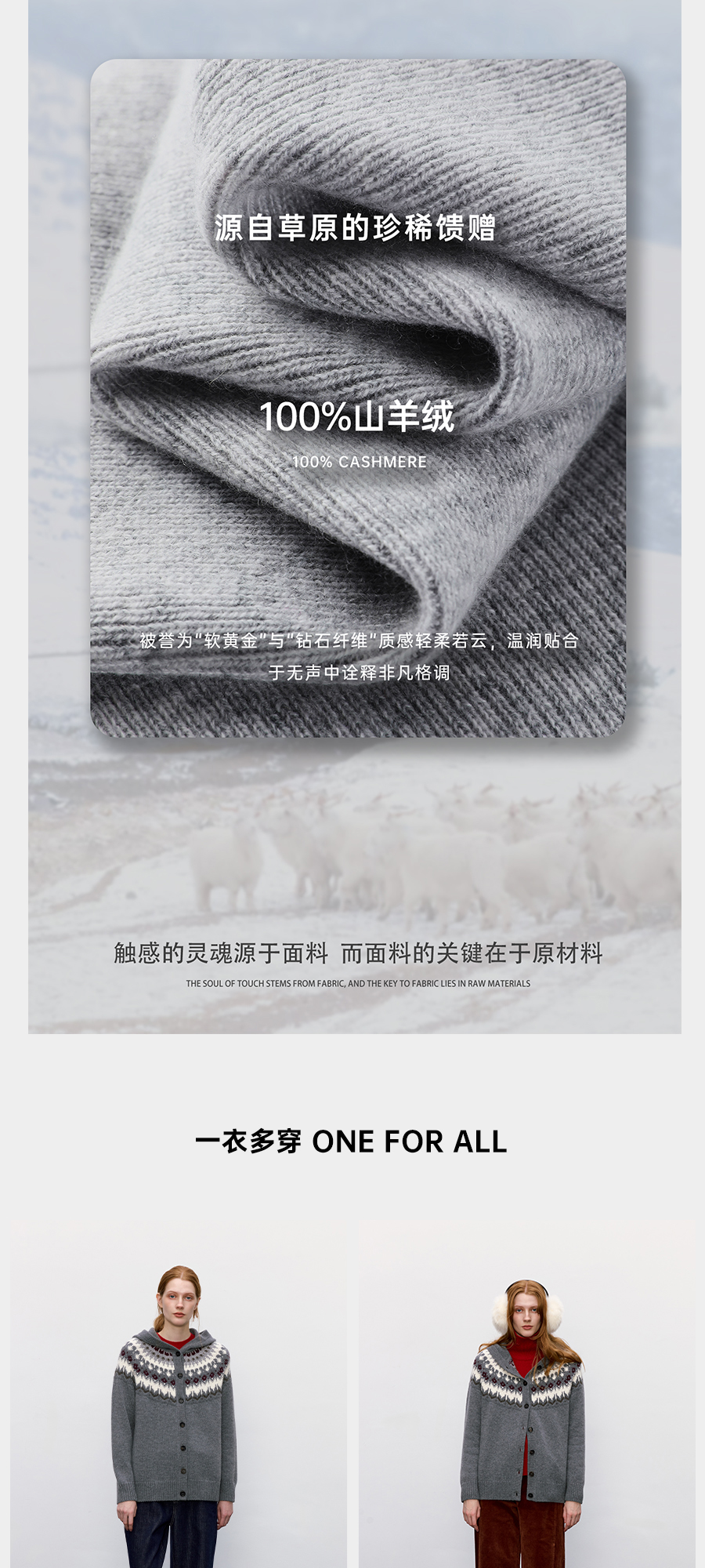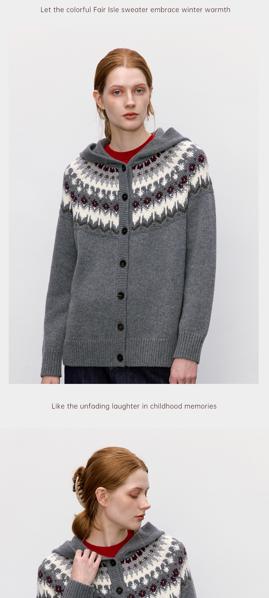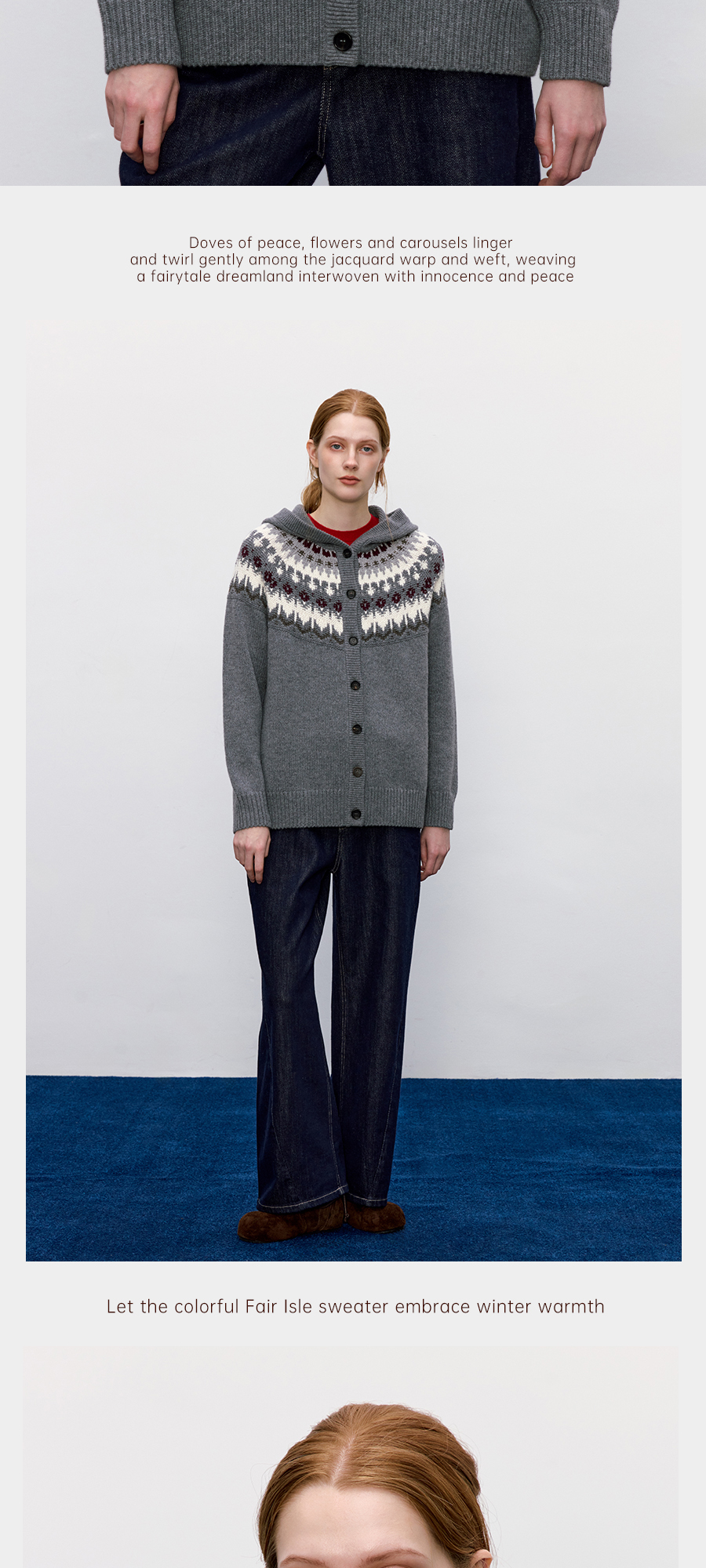 东黎 • 童心未远 手风琴 山羊绒女士冬季提花连帽开衫 5560